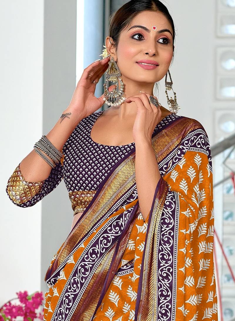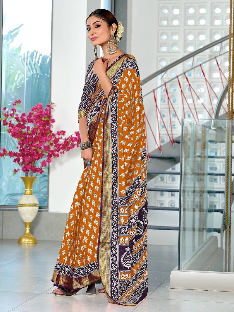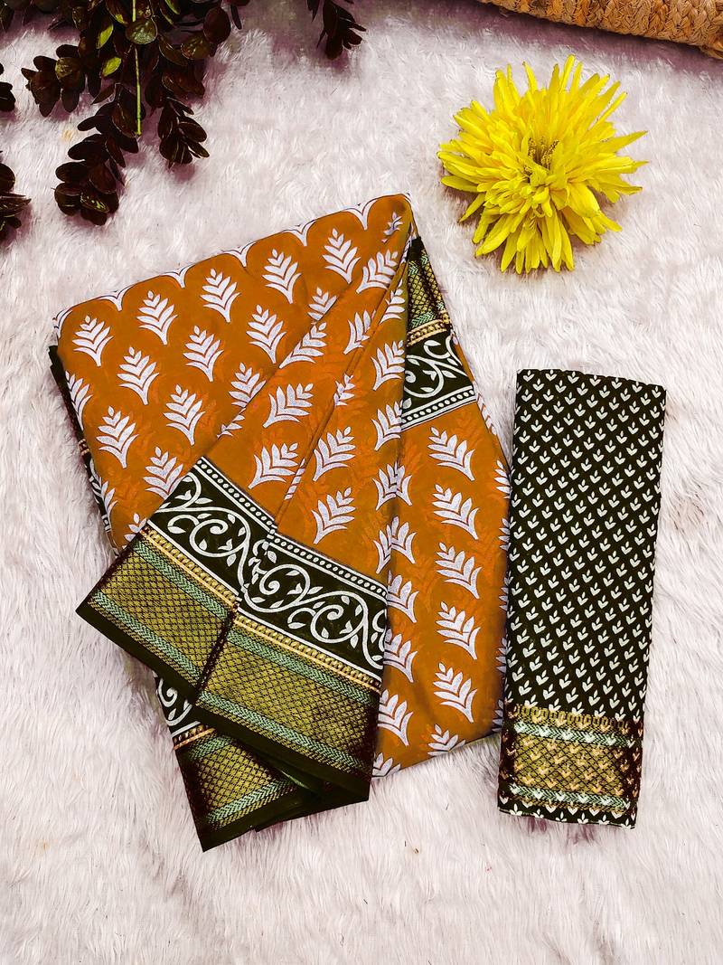 | Product Name | Orange Floral Print Pure Cotton Mulmul Saree With Blouse. | |