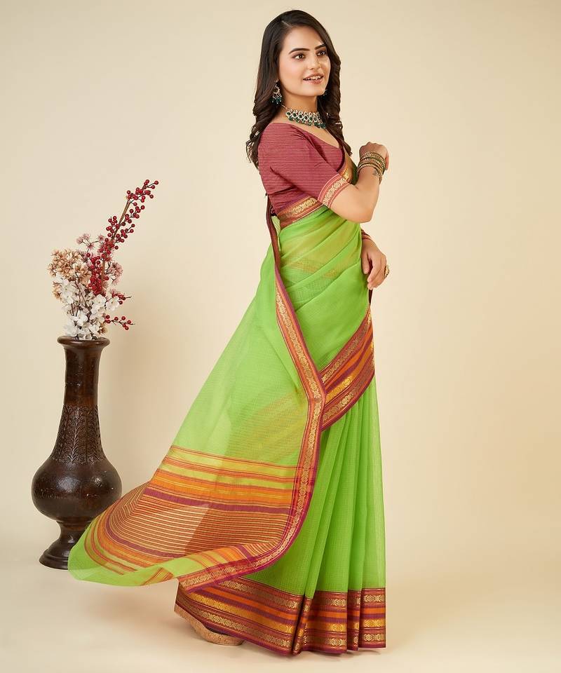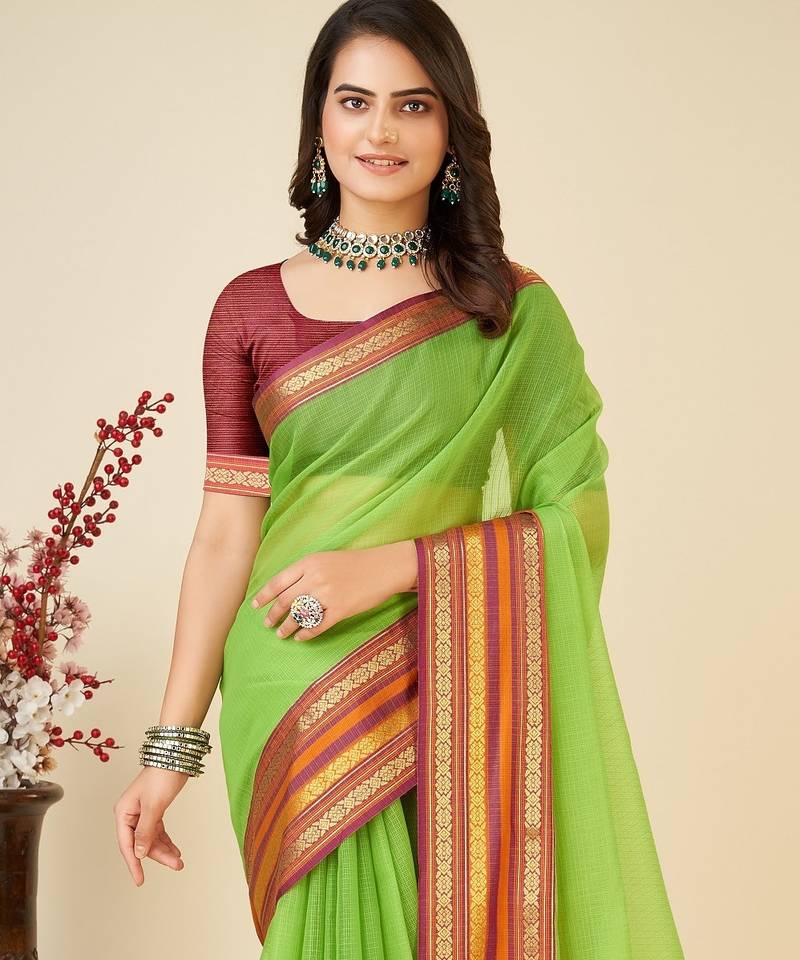 | Product Name | Parrot Green Woven Self Design Cotton Silk Kota Doria Saree With Blouse | |