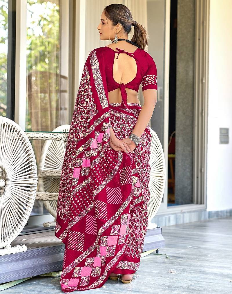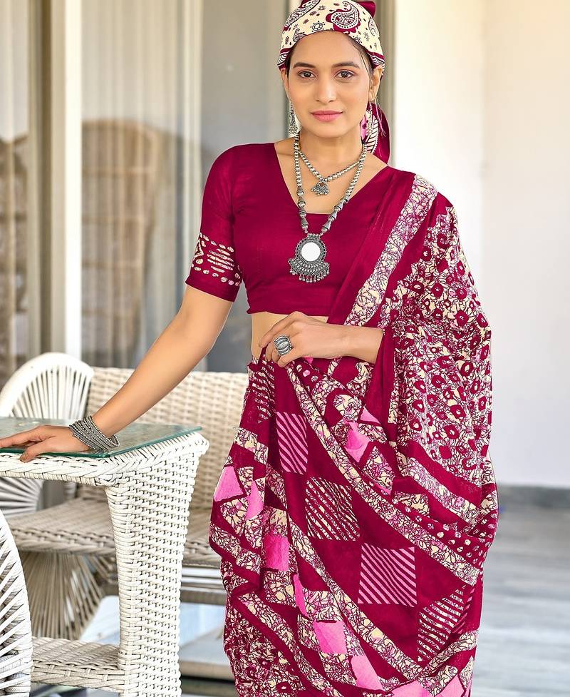 | Product Name | Pink Batik Print Mulmul Cotton Saree With Blouse. | |