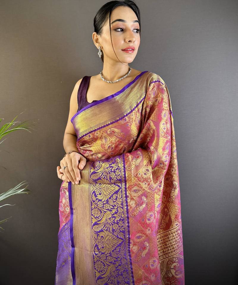 | Product Name | Pink Floral, Peacock Zari Woven Tissue Silk Saree With Blouse | |