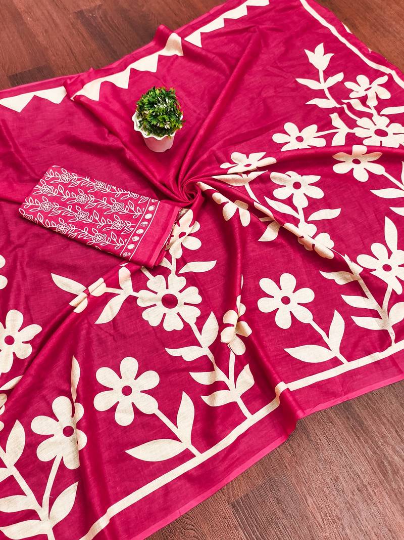 | Product Name | Pink Floral Print Mulmul Cotton Saree With Blouse. | |
