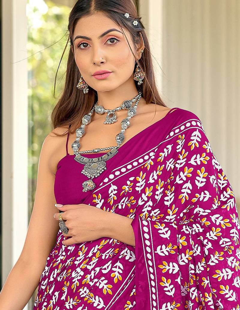 | Product Name | Pink Floral Print Mulmul Cotton Saree With Blouse. | |