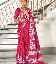 Pink floral print mulmul cotton saree with blouse.