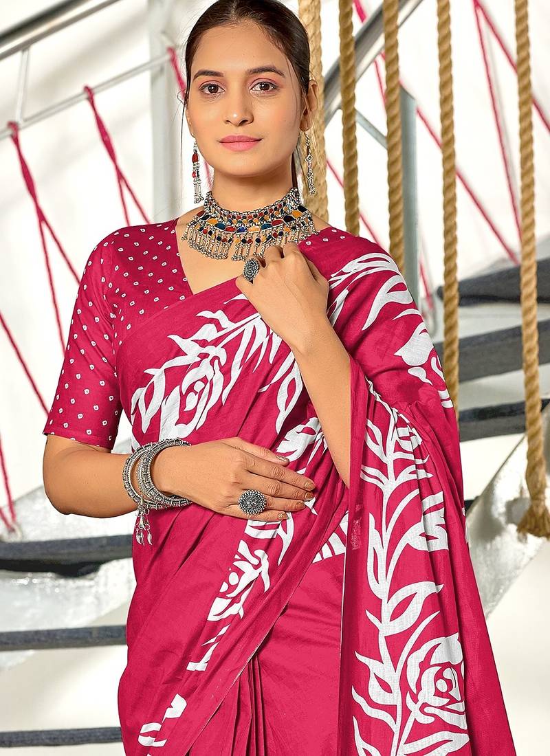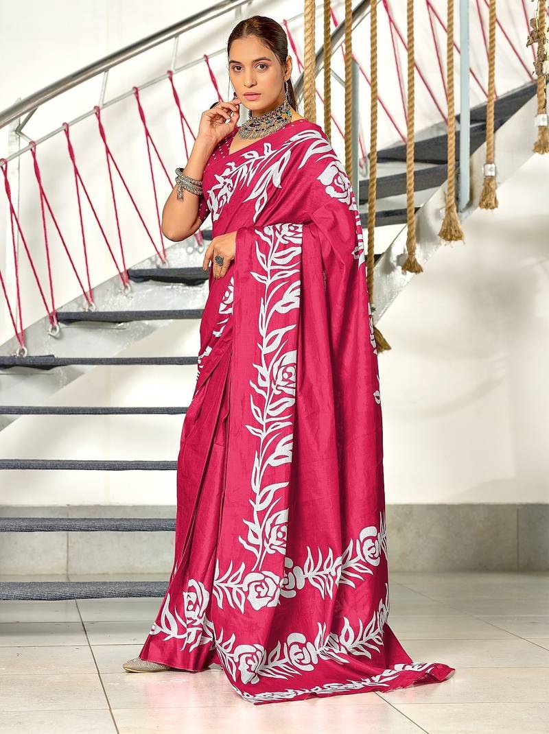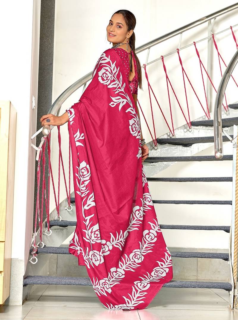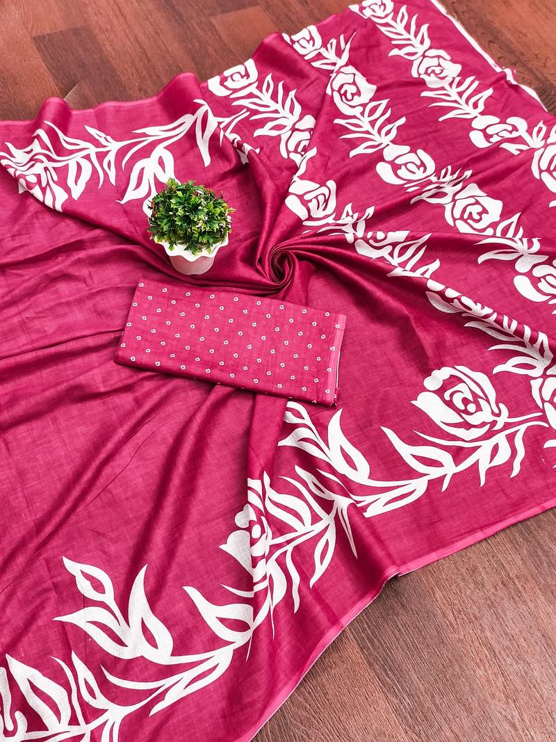 | Product Name | Pink Floral Print Mulmul Cotton Saree With Blouse. | |