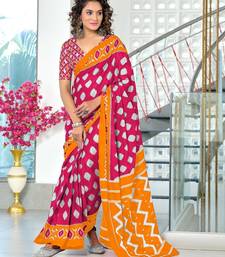 Pink ikkat print soft pure cotton saree with blouse.
