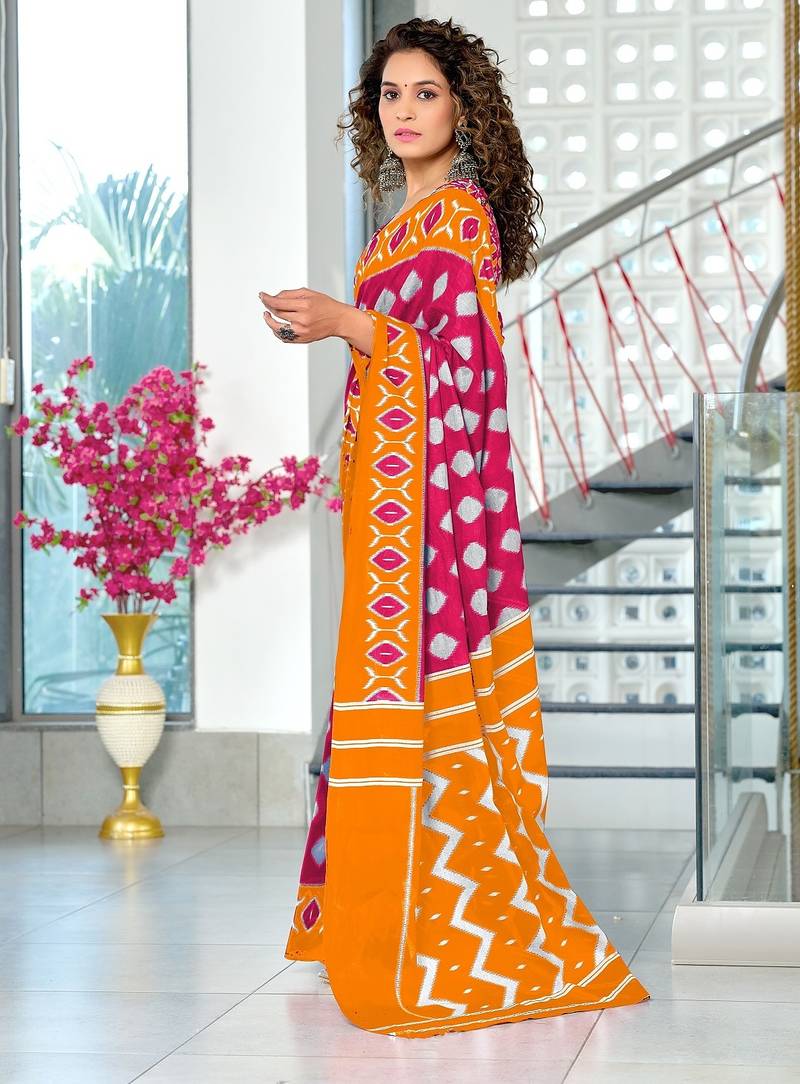 | Product Name | Pink Ikkat Print Soft Pure Cotton Saree With Blouse. | |