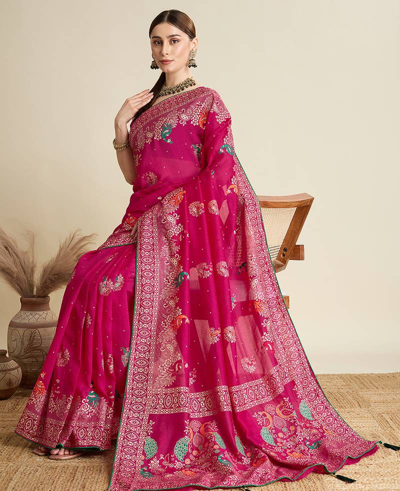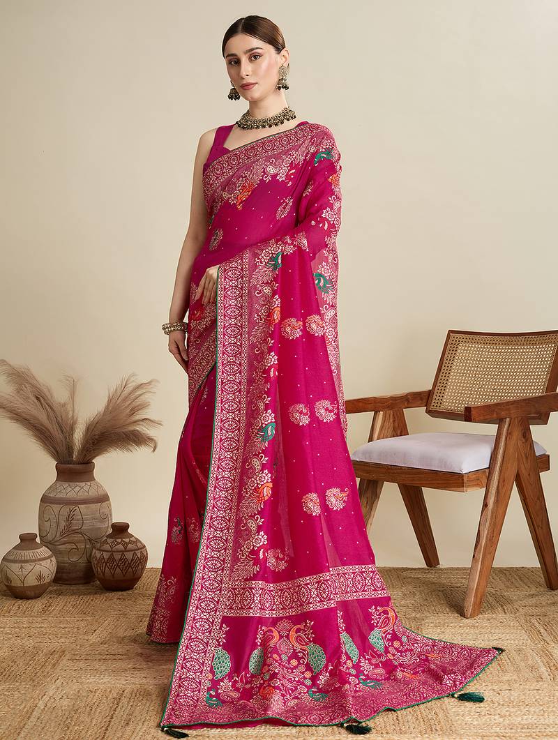 | Product Name | Pink Printed Floral Print Cotton Silk Bollywood Saree With Blouse | |