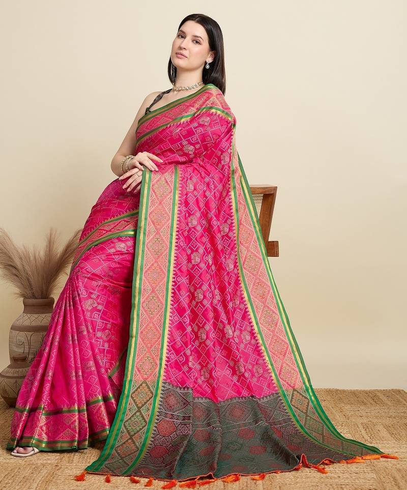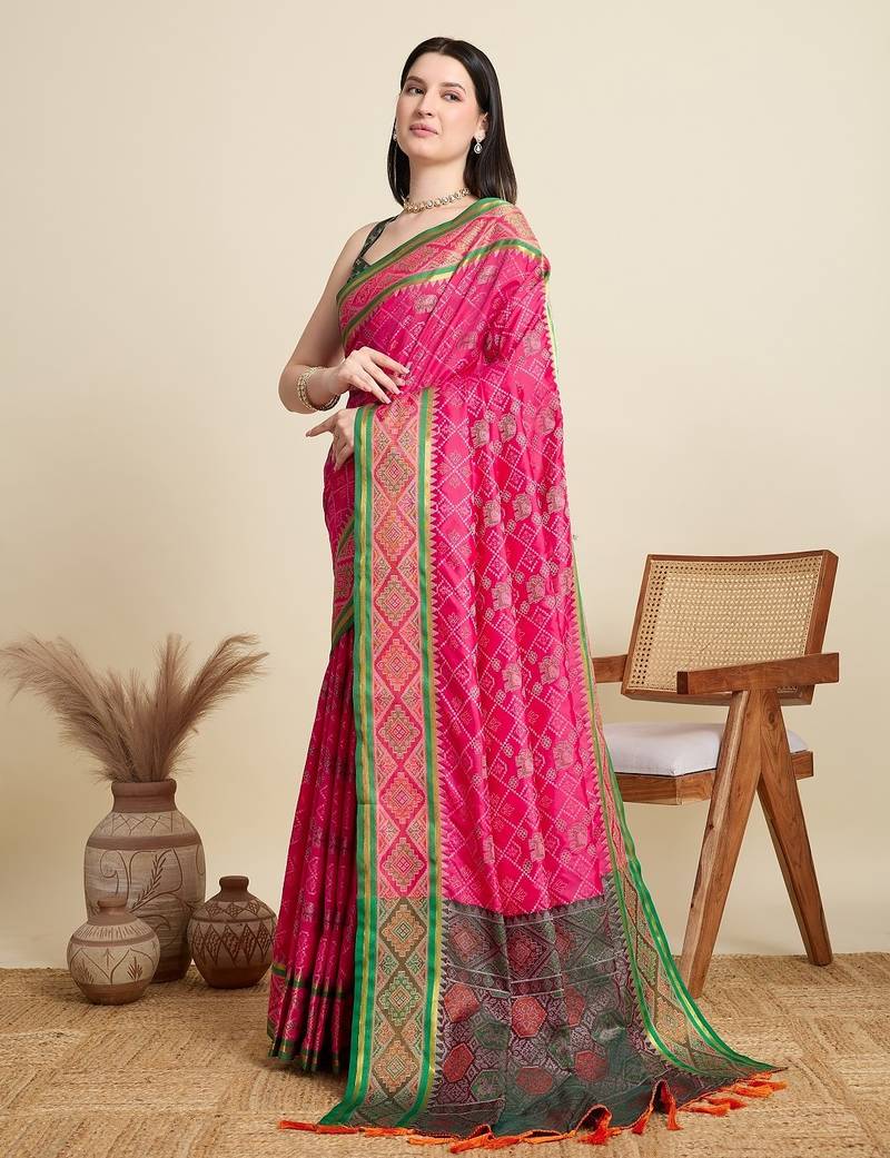| Product Name | Pink Woven Self Design Embellished Pure Silk Patola Saree With Blouse | |