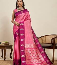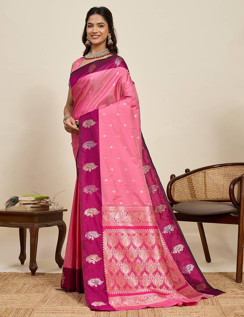 Pink zari woven soft silk banarasi saree with blouse