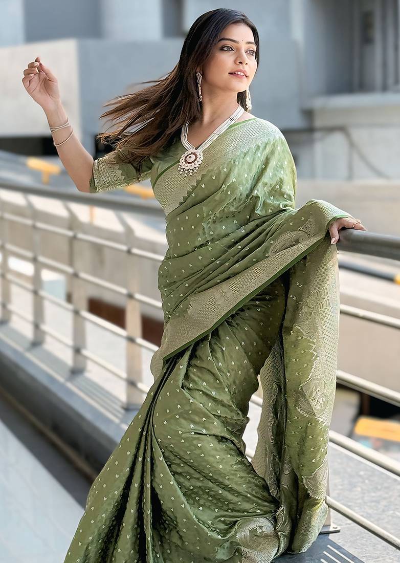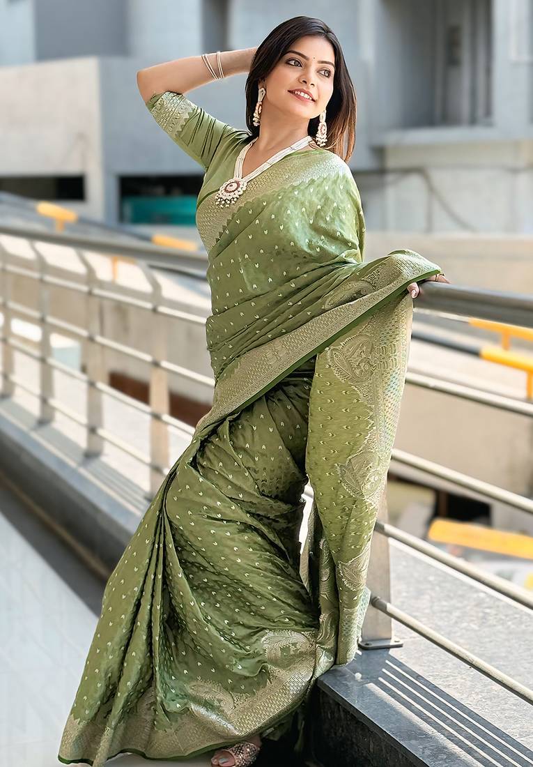 | Product Name | Pista Green Woven Self Design Antique Silk Banarasi Saree With Blouse | |