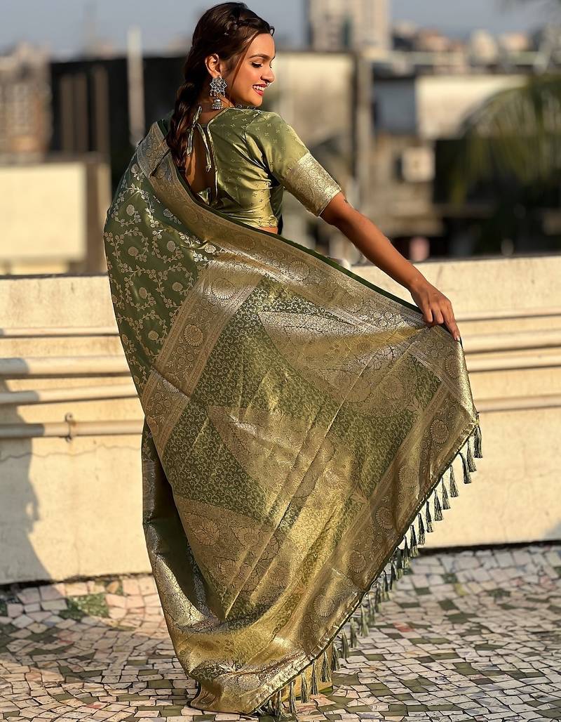 | Product Name | Pista Green Woven Self Design Antique Silk Banarasi Saree With Blouse | |