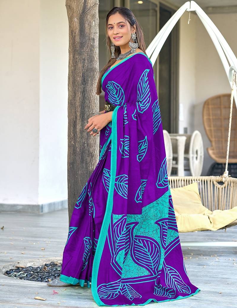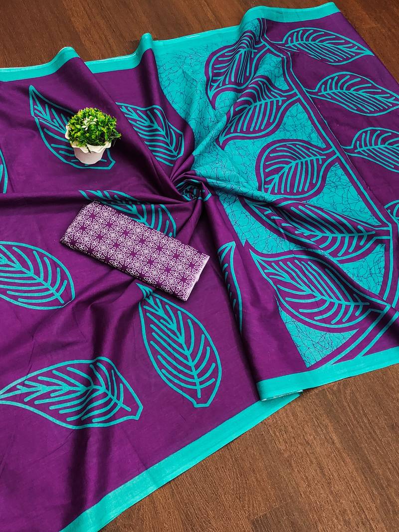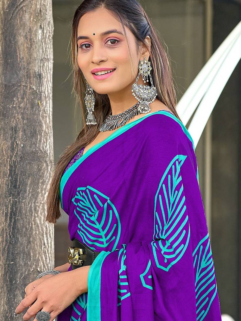 | Product Name | Purple Block Print Mulmul Cotton Saree With Blouse. | |