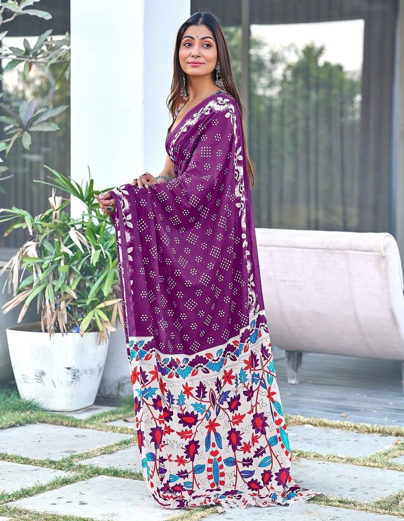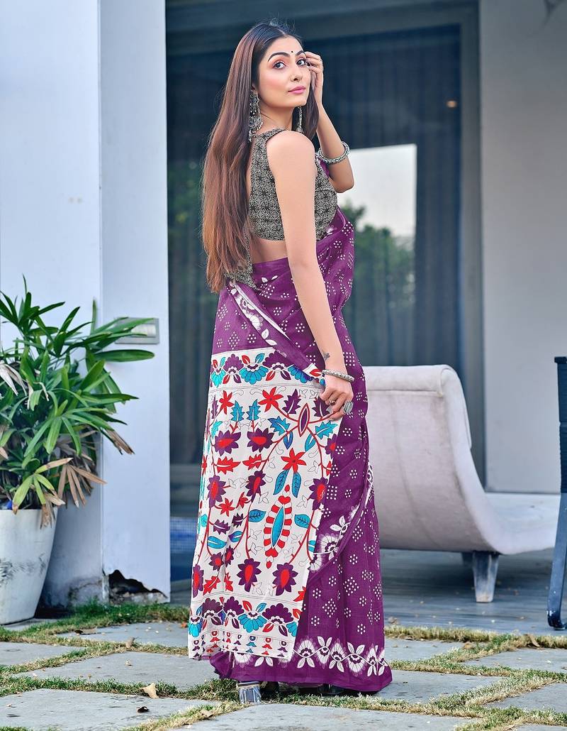 | Product Name | Purple Block Print Soft Pure Cotton Saree With Blouse. | |