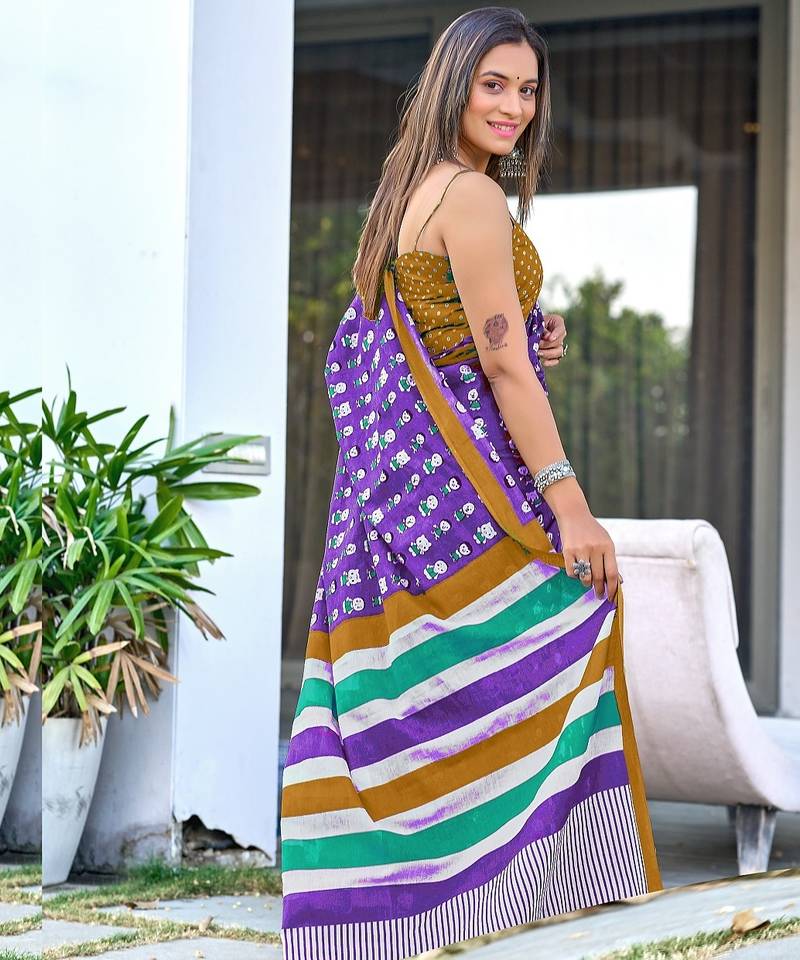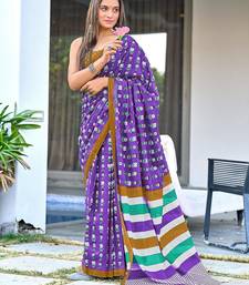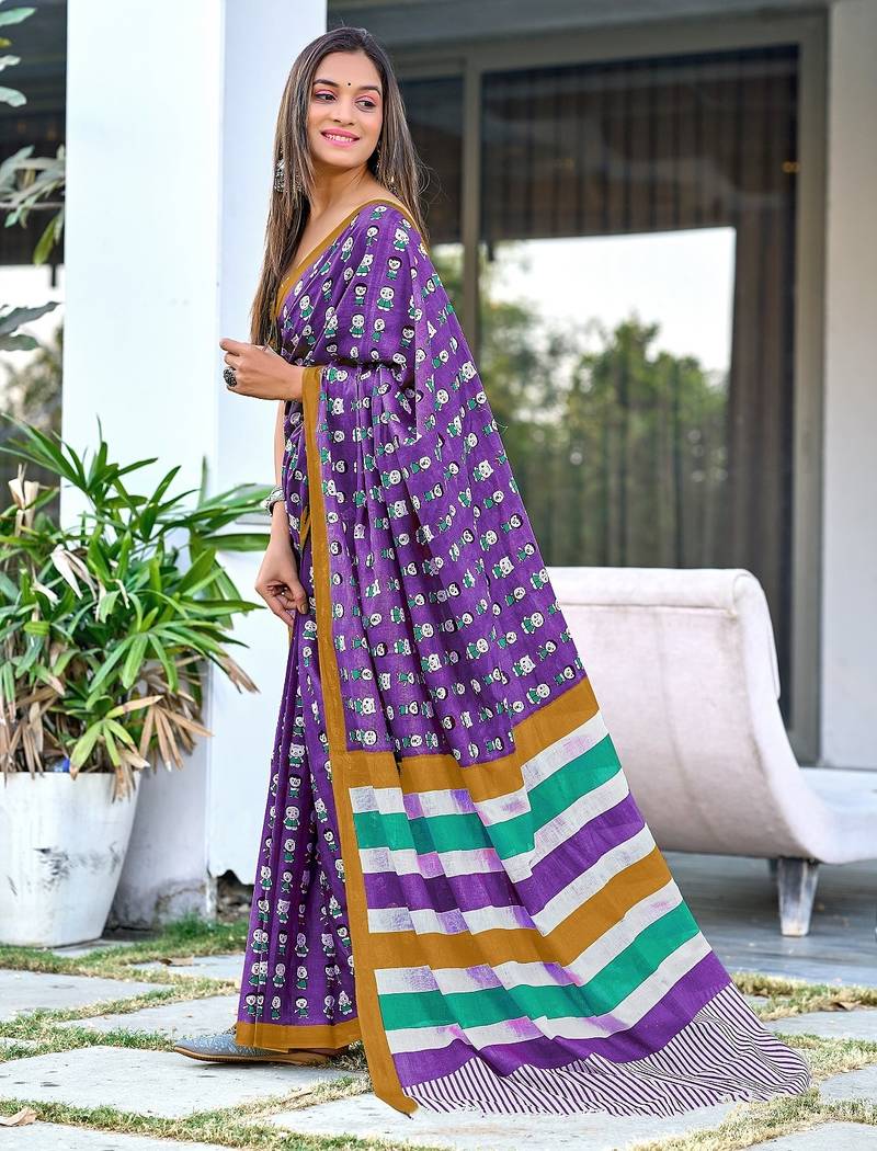 | Product Name | Purple Block Print Soft Pure Cotton Saree With Blouse. | |