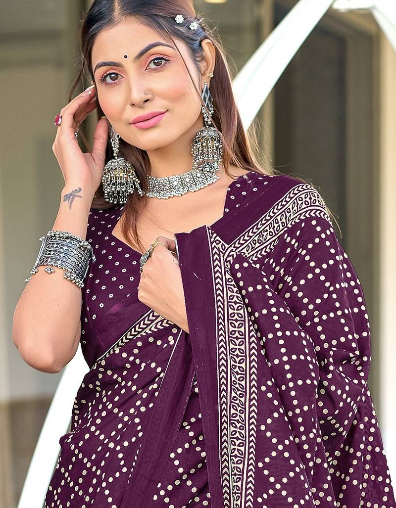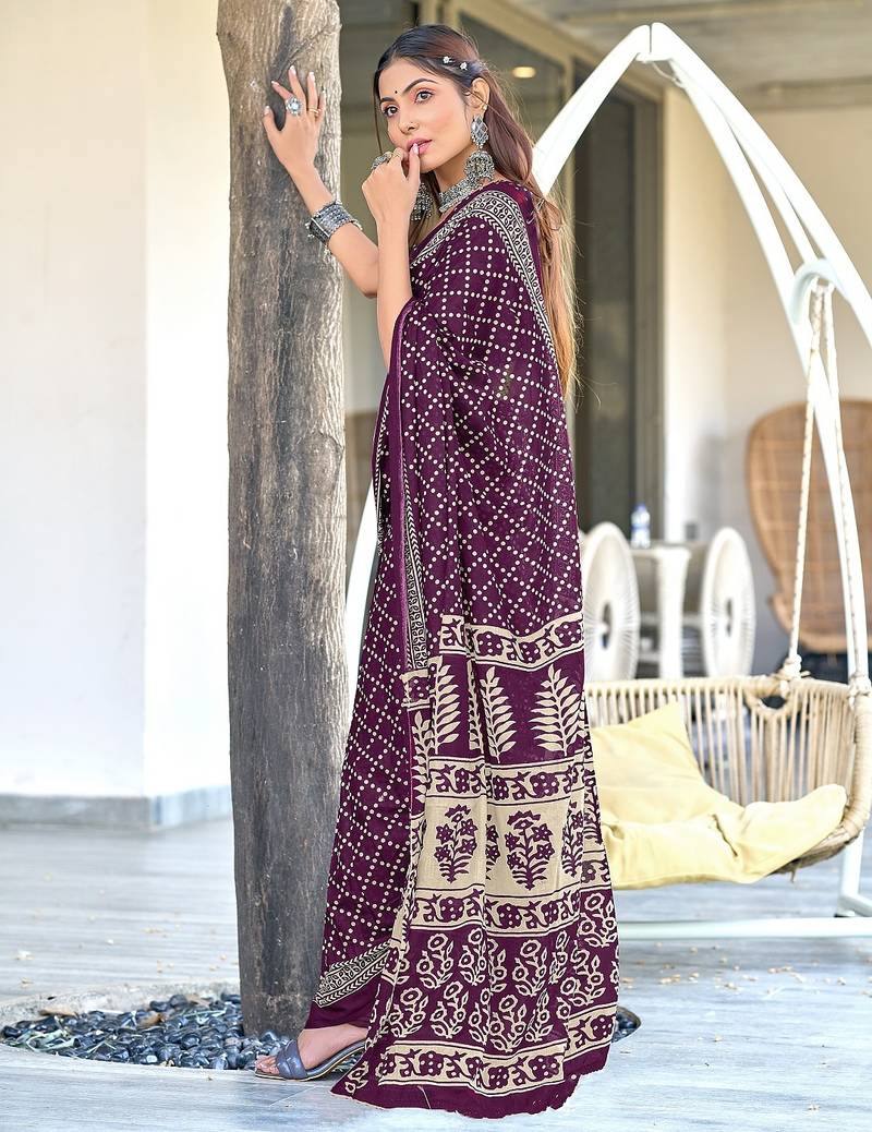 | Product Name | Purple Floral, Bandhani Print Mulmul Cotton Saree With Blouse. | |