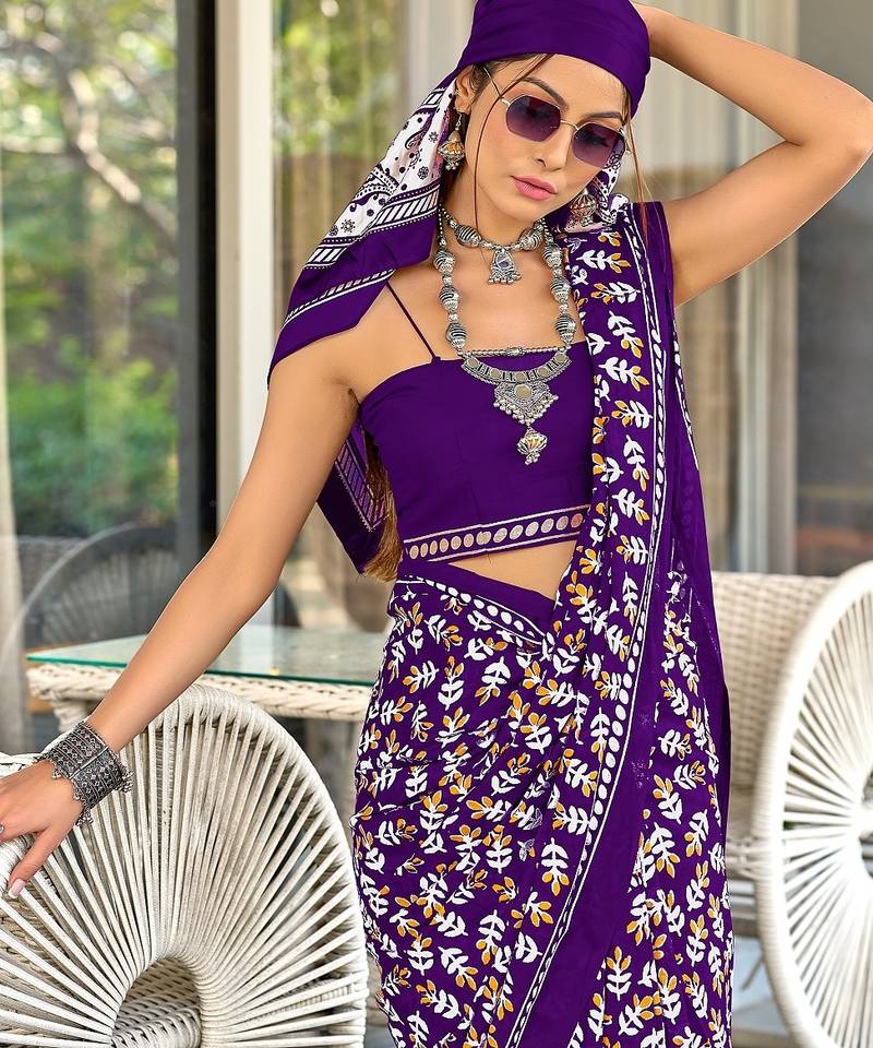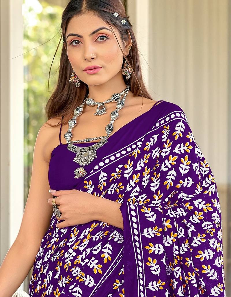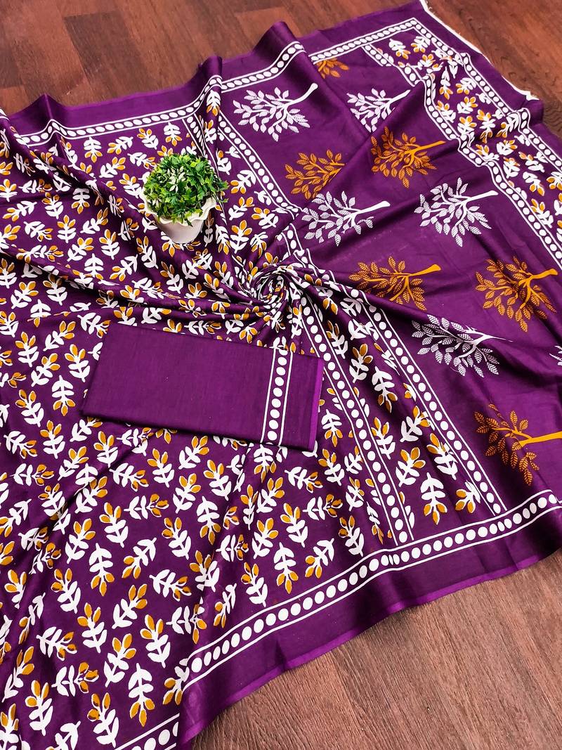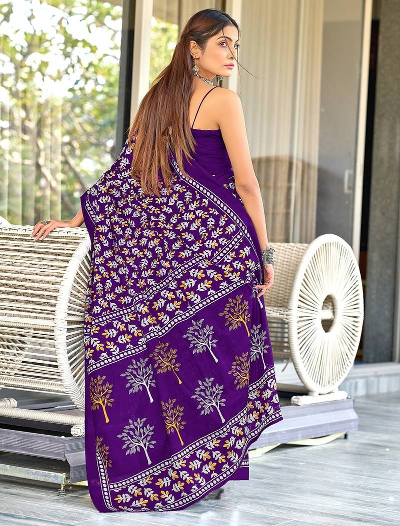 | Product Name | Purple Floral Print Mulmul Cotton Saree With Blouse. | |