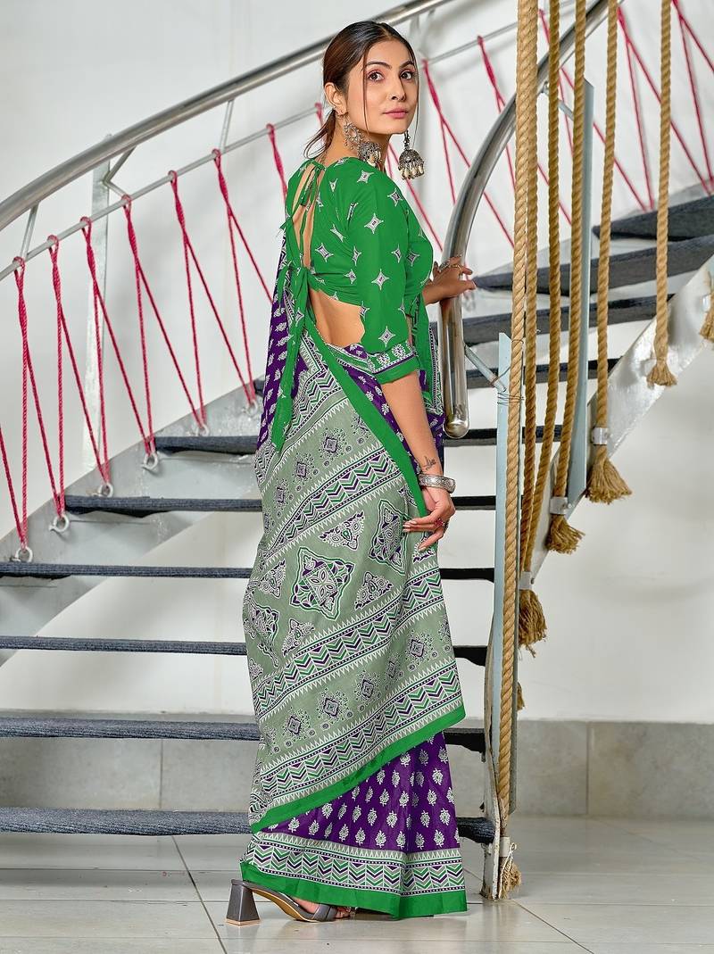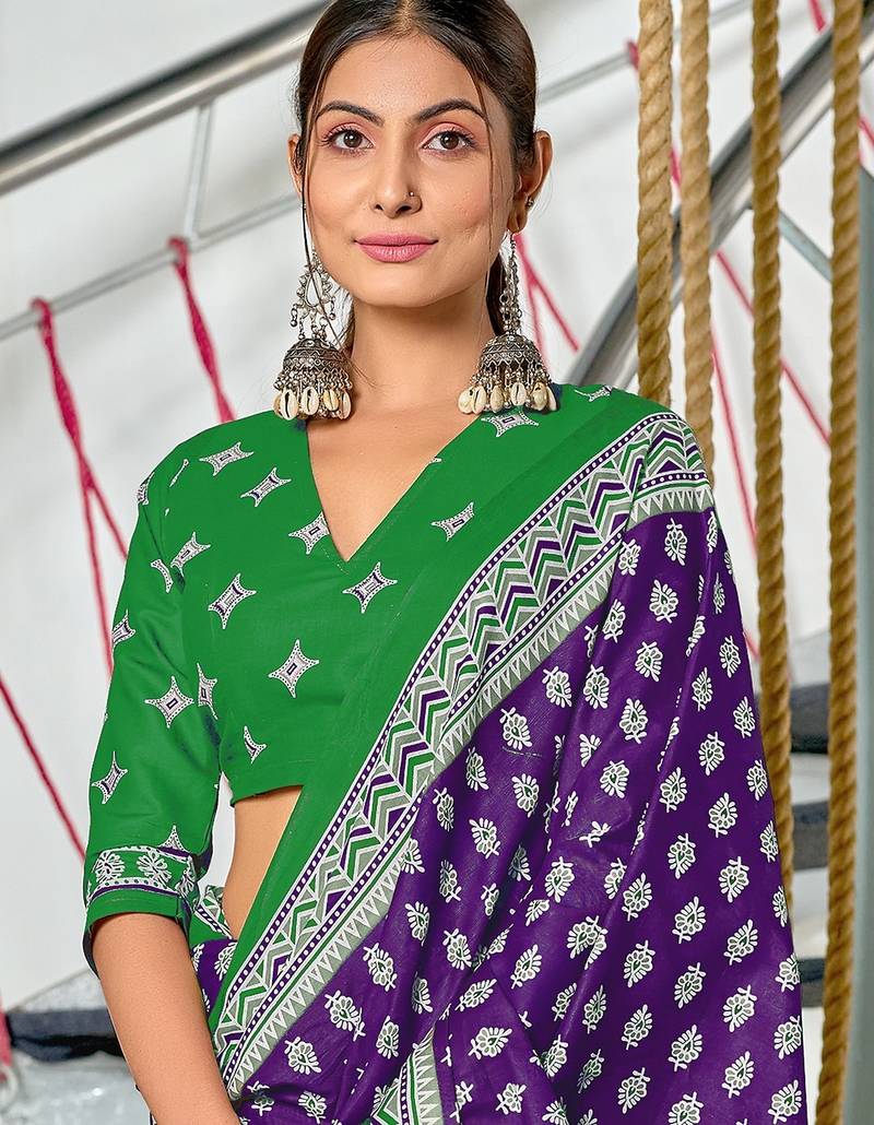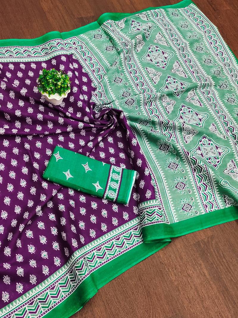 | Product Name | Purple Floral Print Mulmul Cotton Saree With Blouse. | |