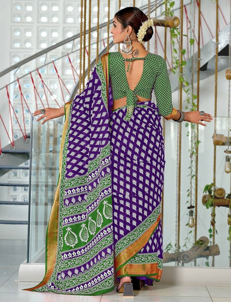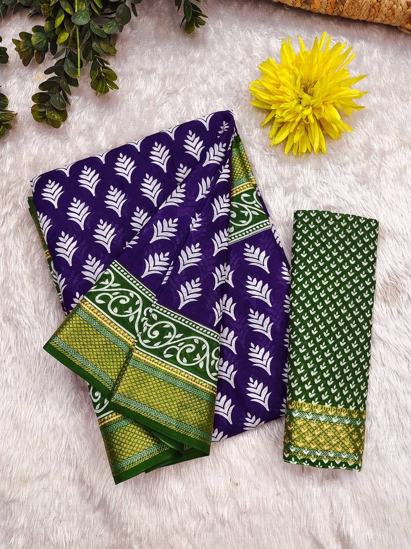 | Product Name | Purple Floral Print Pure Cotton Mulmul Saree With Blouse. | |