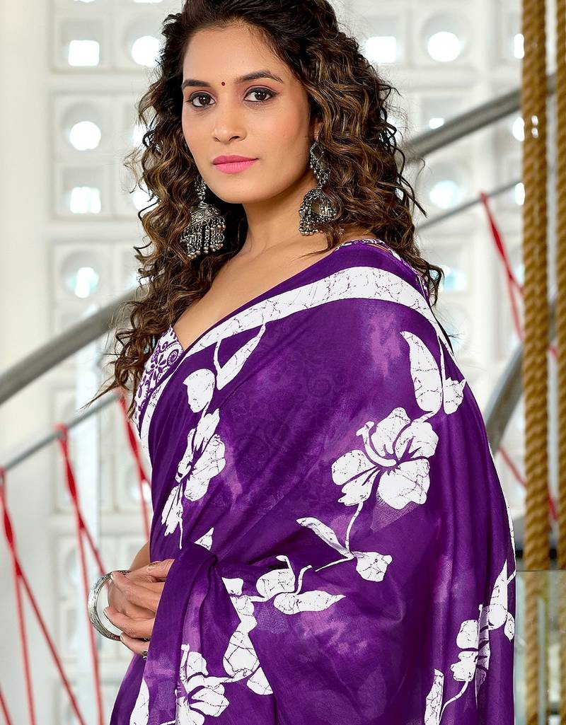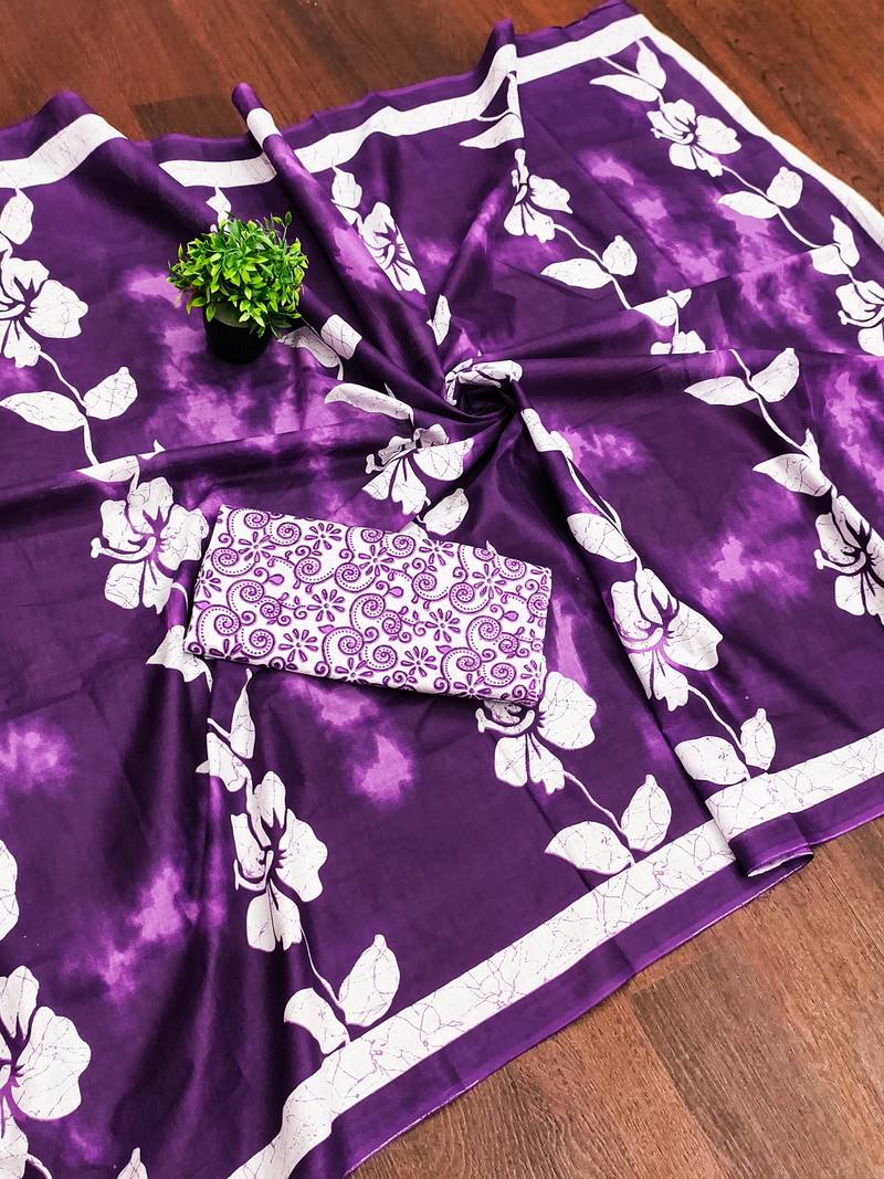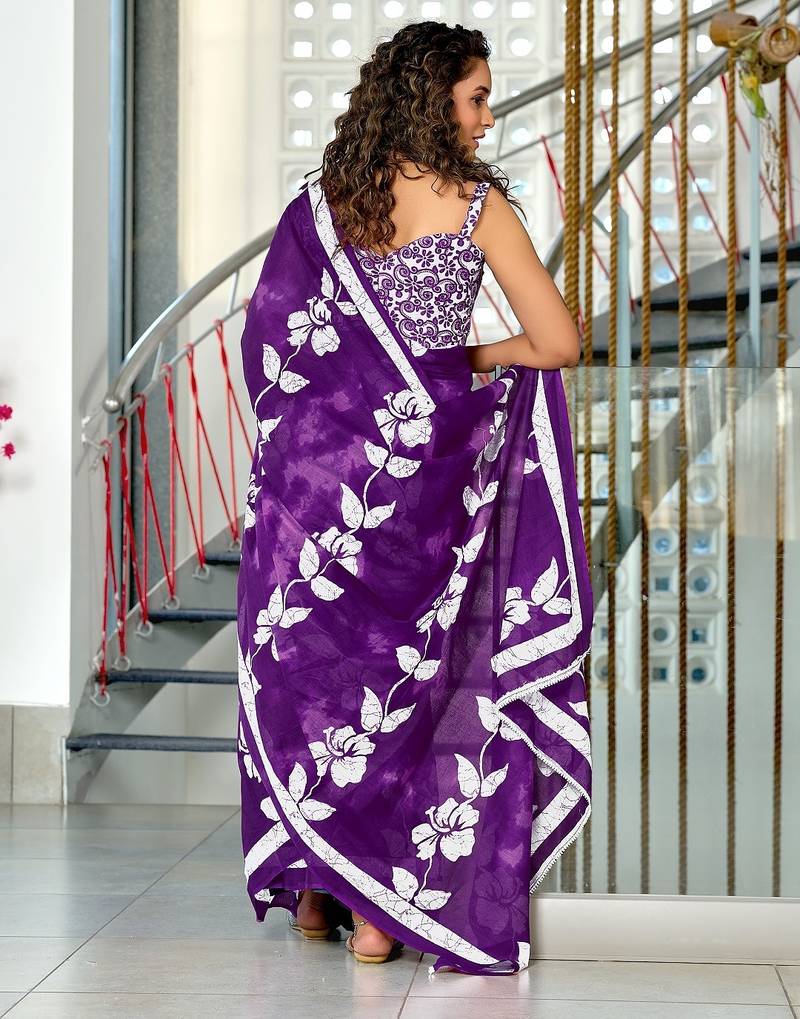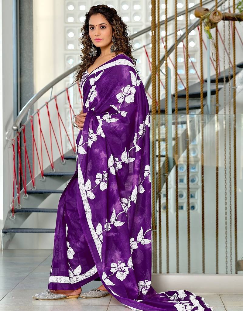 | Product Name | Purple Floral Print Soft Pure Cotton Saree With Blouse. | |