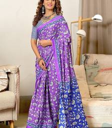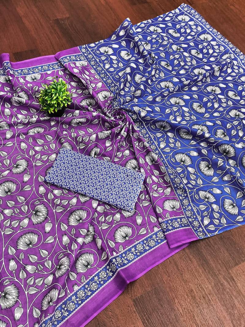 | Product Name | Purple Floral Print Soft Pure Cotton Saree With Blouse. | |