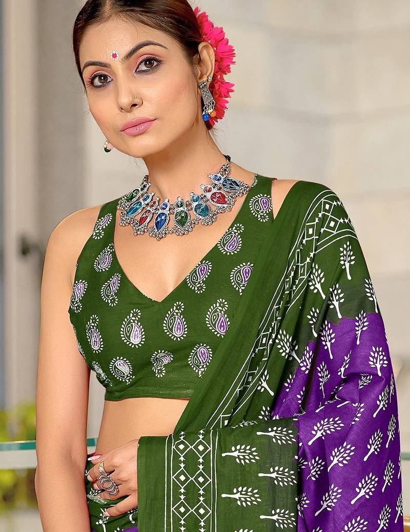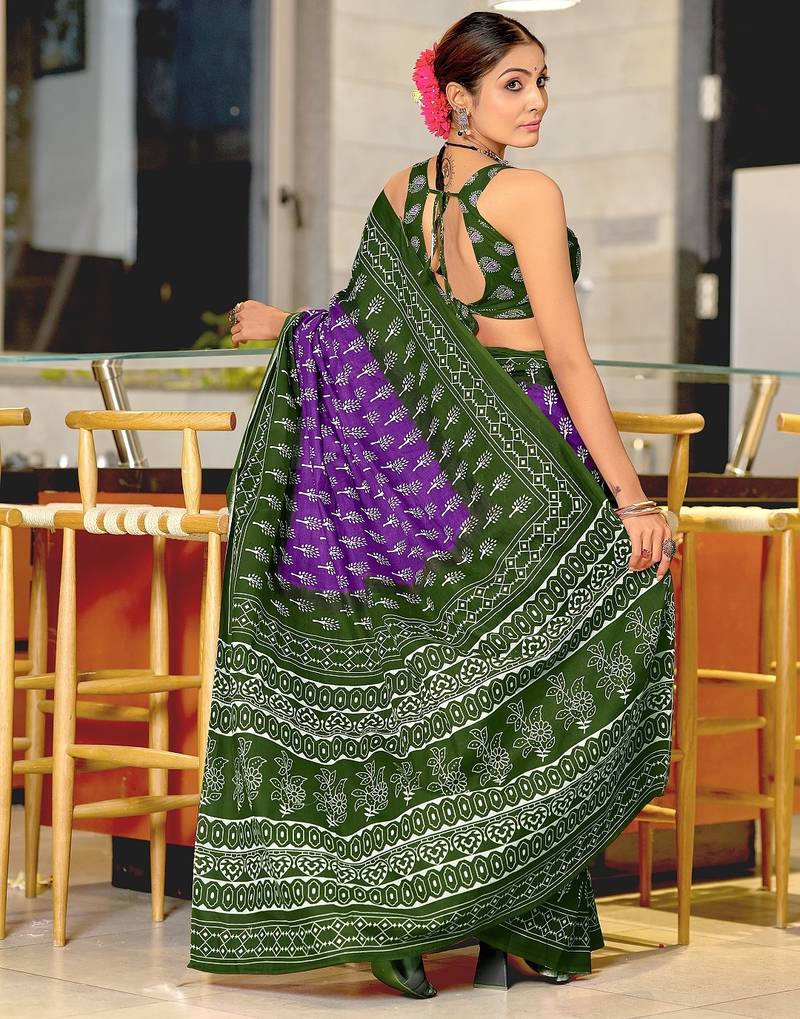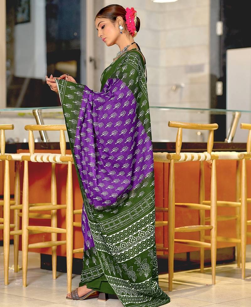 | Product Name | Purple Floral Print Soft Pure Cotton Saree With Blouse. | |