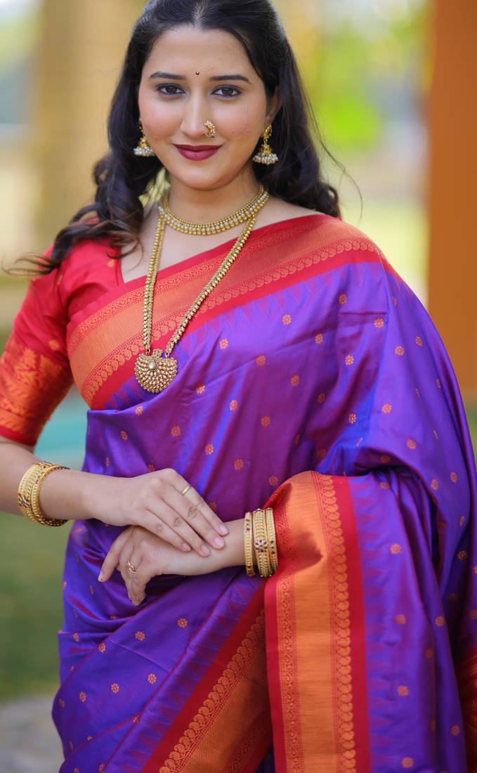 | • | Saree | : | Color- Purple / Fabric- Paithani Silk |
