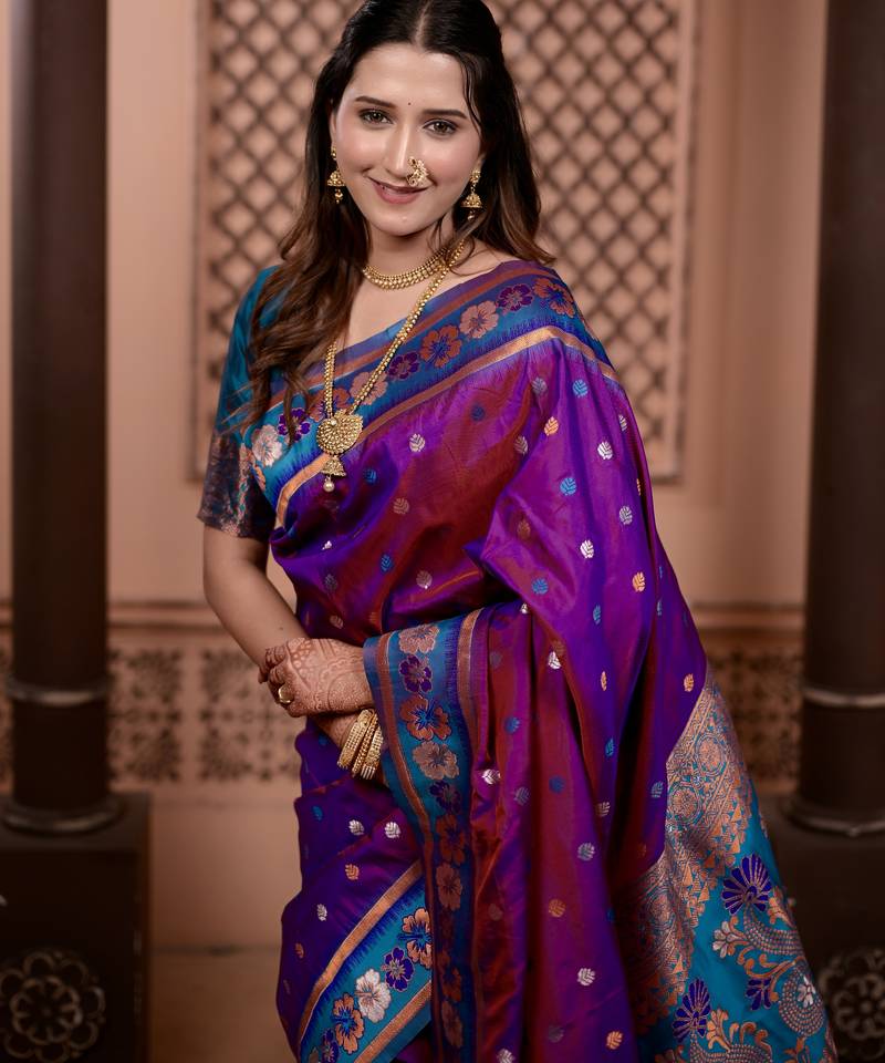 | Product Name | Purple Floral, Zari Work Soft Silk Saree With Blouse | |