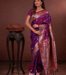 | Product Name | Purple Floral, Zari Work Slik Blend Saree With Blouse | |