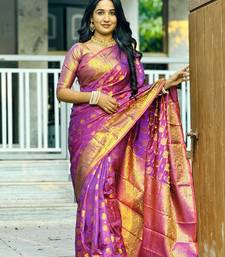 | Product Name | Purple Floral, Zari Woven Banarasi Silk Saree With Blouse | |
