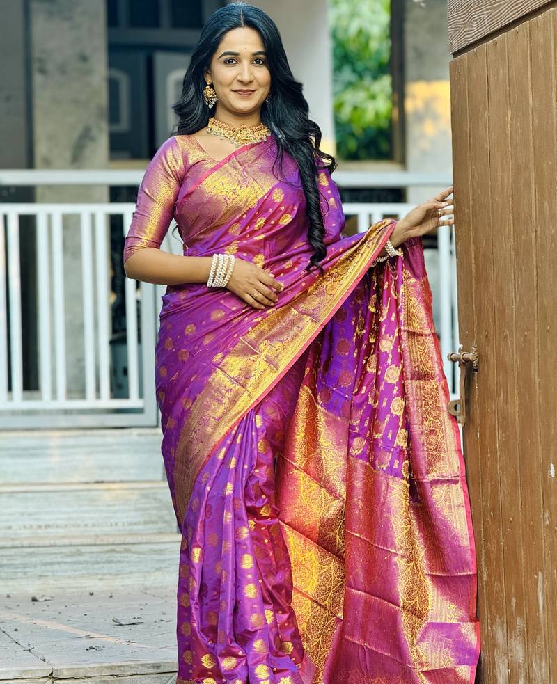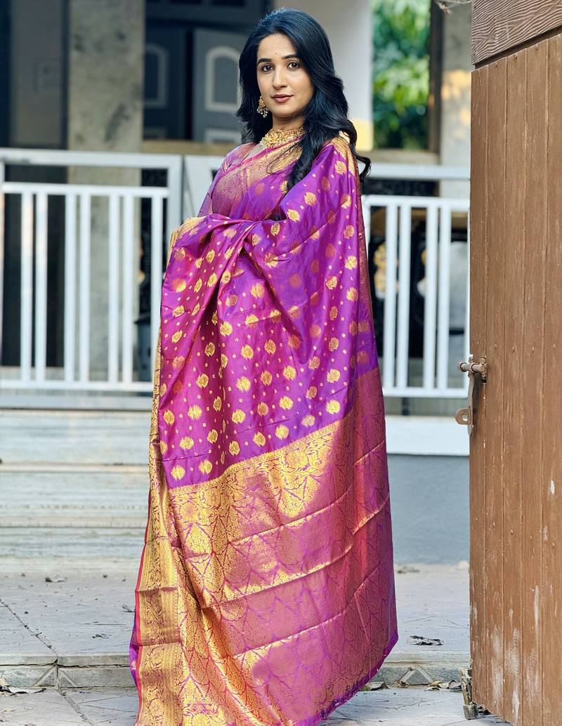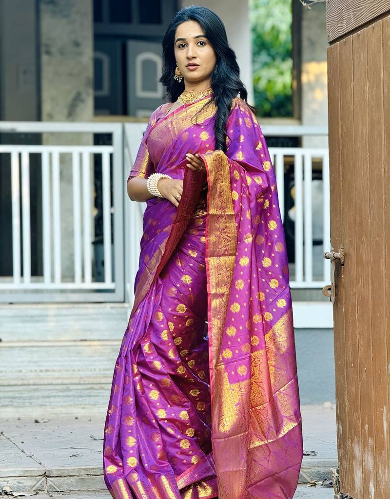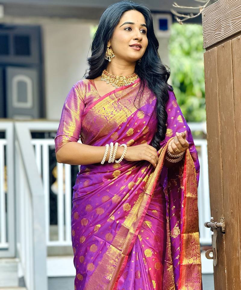 | • | Saree | : | Color- Purple / Fabric- Banarasi Silk |