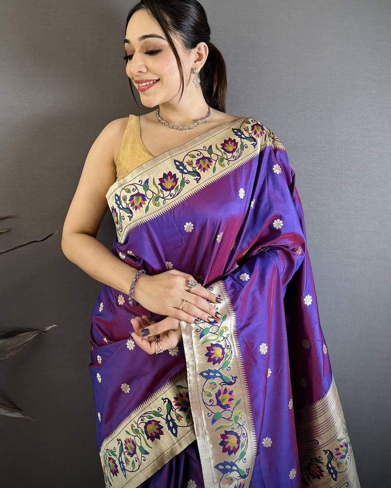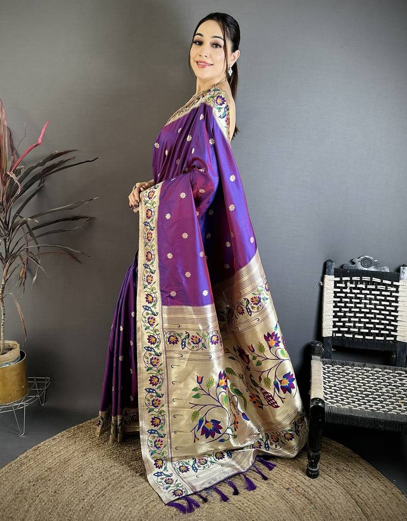 Product Name Purple Floral, Zari Woven Soft Silk Saree With Blouse