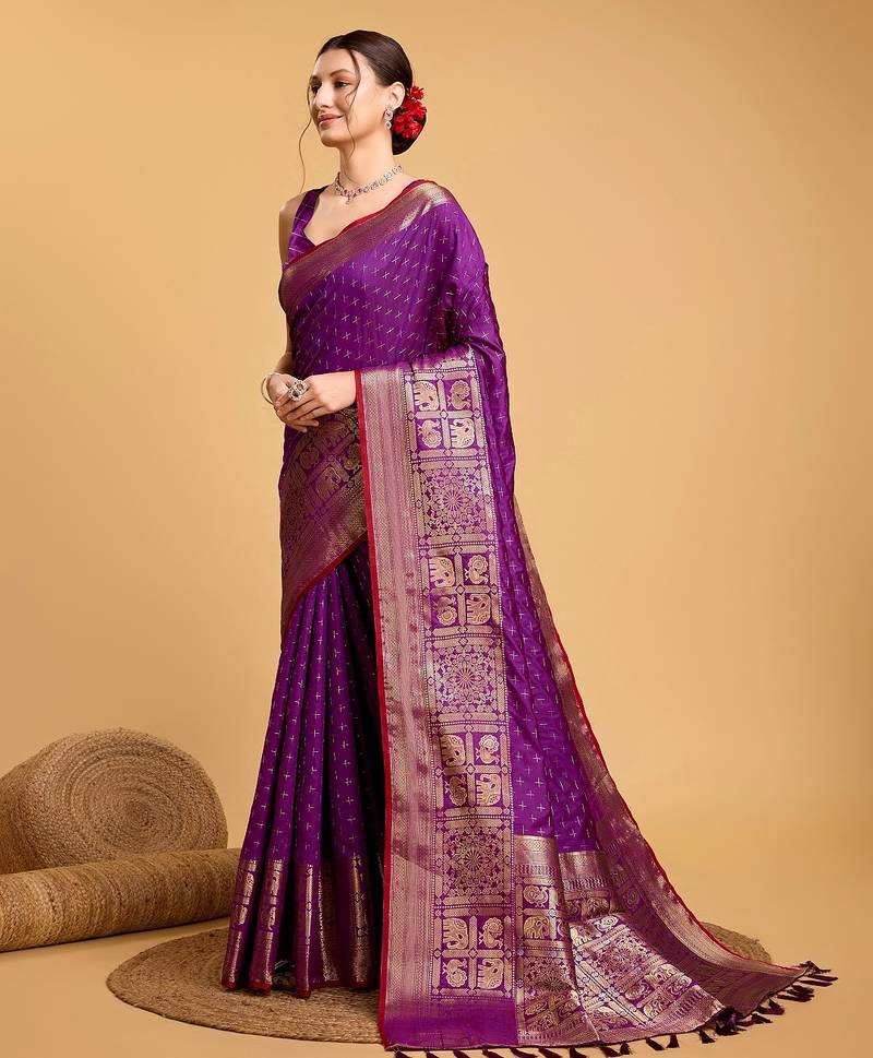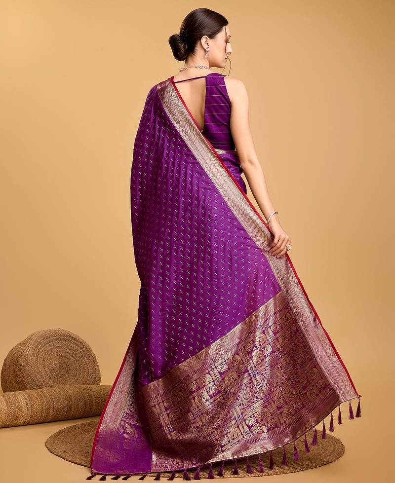 Purple woven embellished self design pure silk banarasi saree with blouse