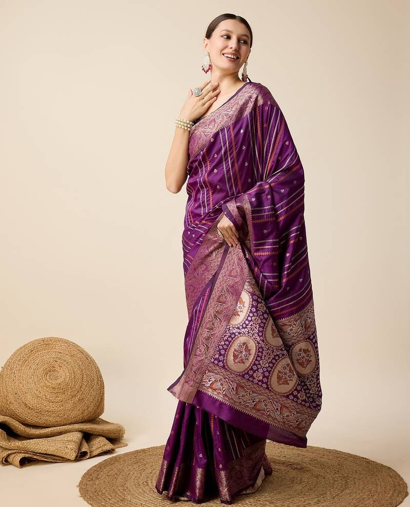 Purple woven embellished self design pure silk kanjivaram saree with blouse