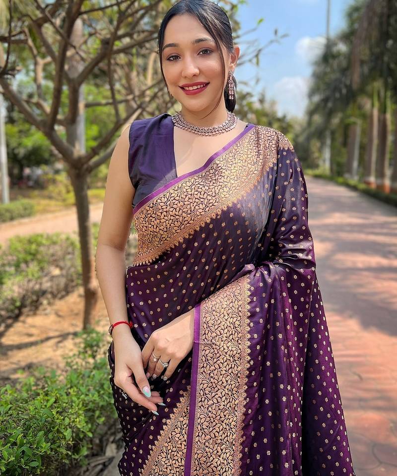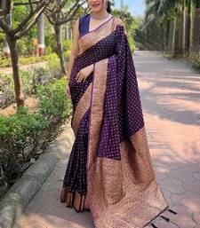 Purple woven self design banarasi katan silk banarasi saree with blouse
