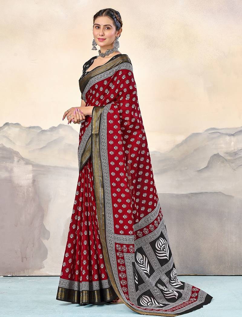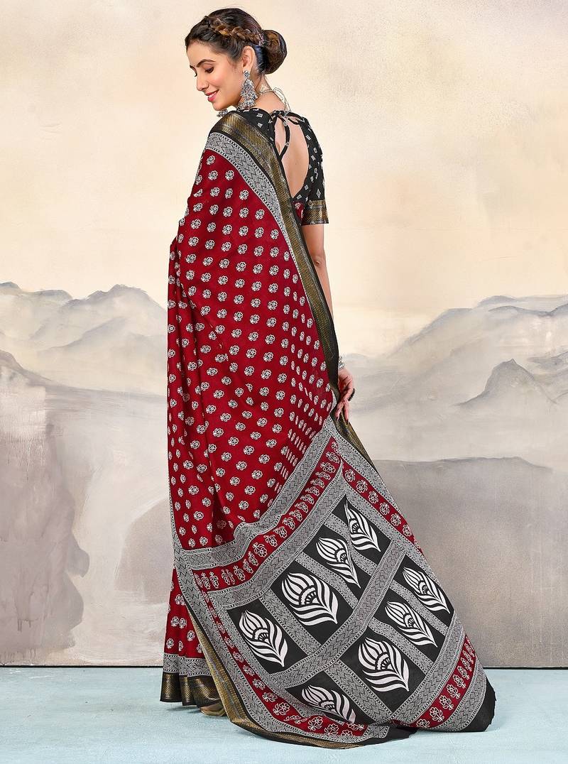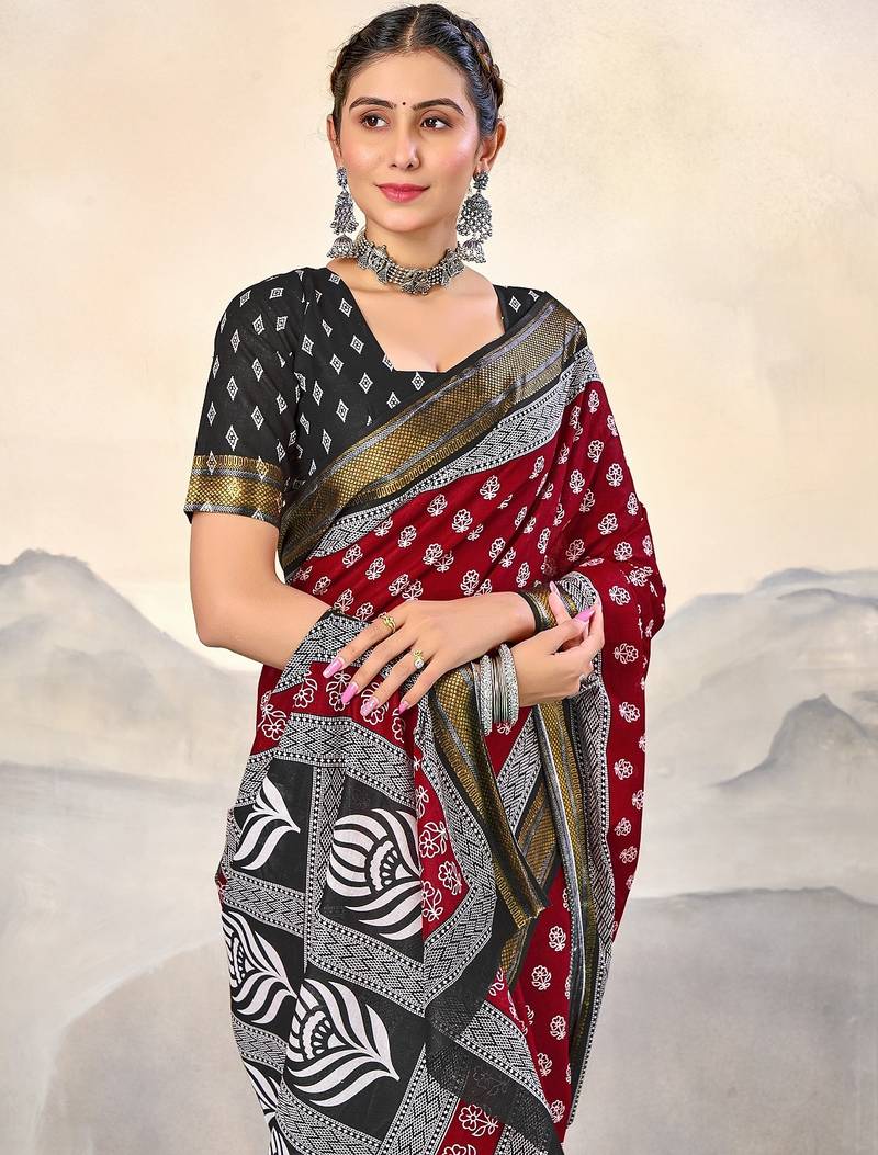 | Product Name | Red, Black Floral Print Mulmul Cotton Saree With Blouse. | |