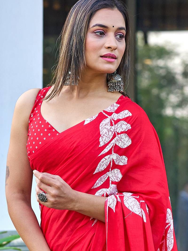 | Product Name | Red Block Print Soft Pure Cotton Saree With Blouse. | |