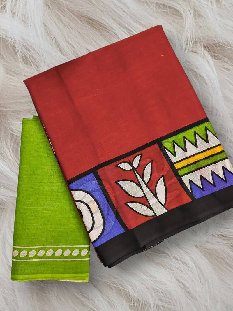 | Product Name | Red Block Print Soft Pure Cotton Saree With Blouse. | |