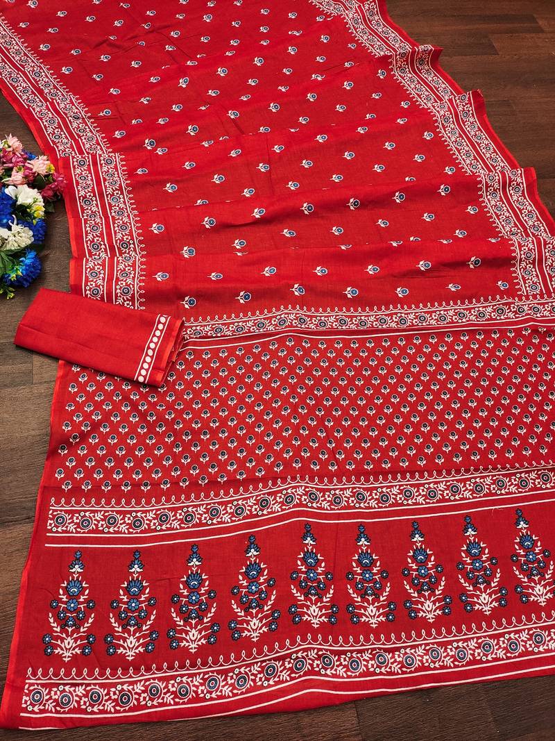 | Product Name | Red Floral Print Mulmul Cotton Saree With Blouse. | |