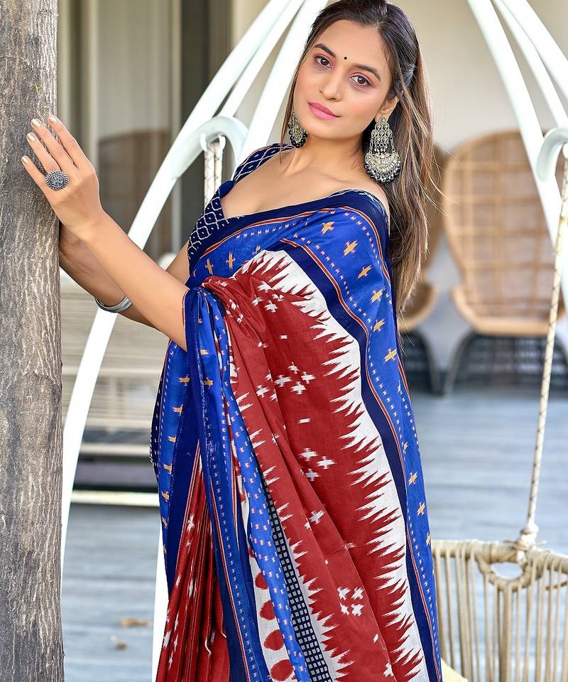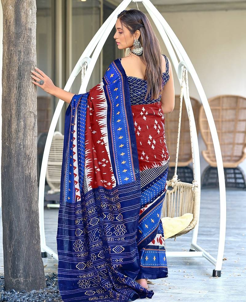 | Product Name | Red Ikkat Print Mulmul Cotton Saree With Blouse. | |