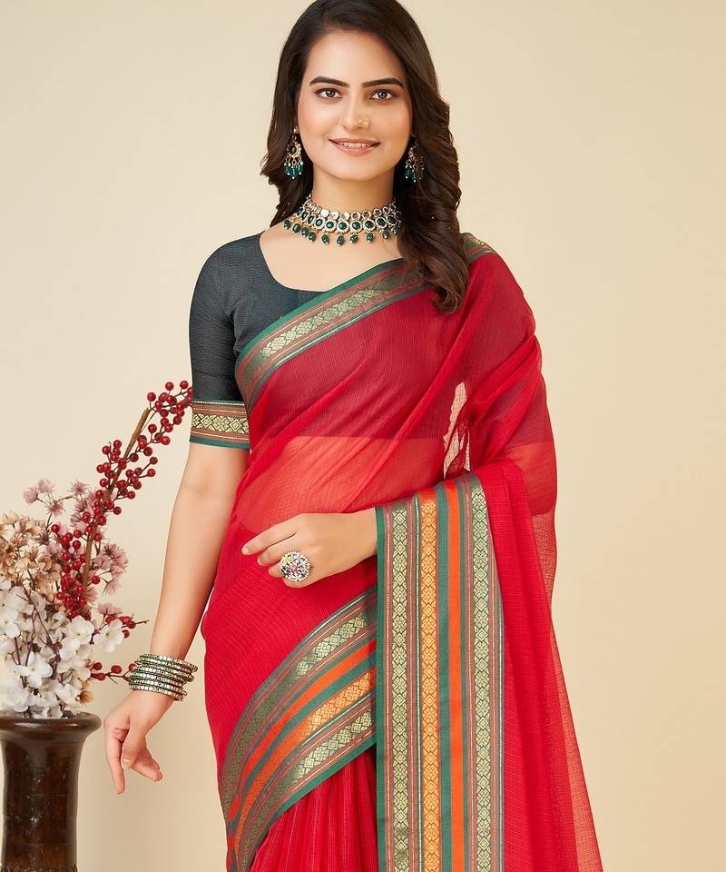 | Product Name | Red Woven Self Design Cotton Silk Kota Doria Saree With Blouse | |