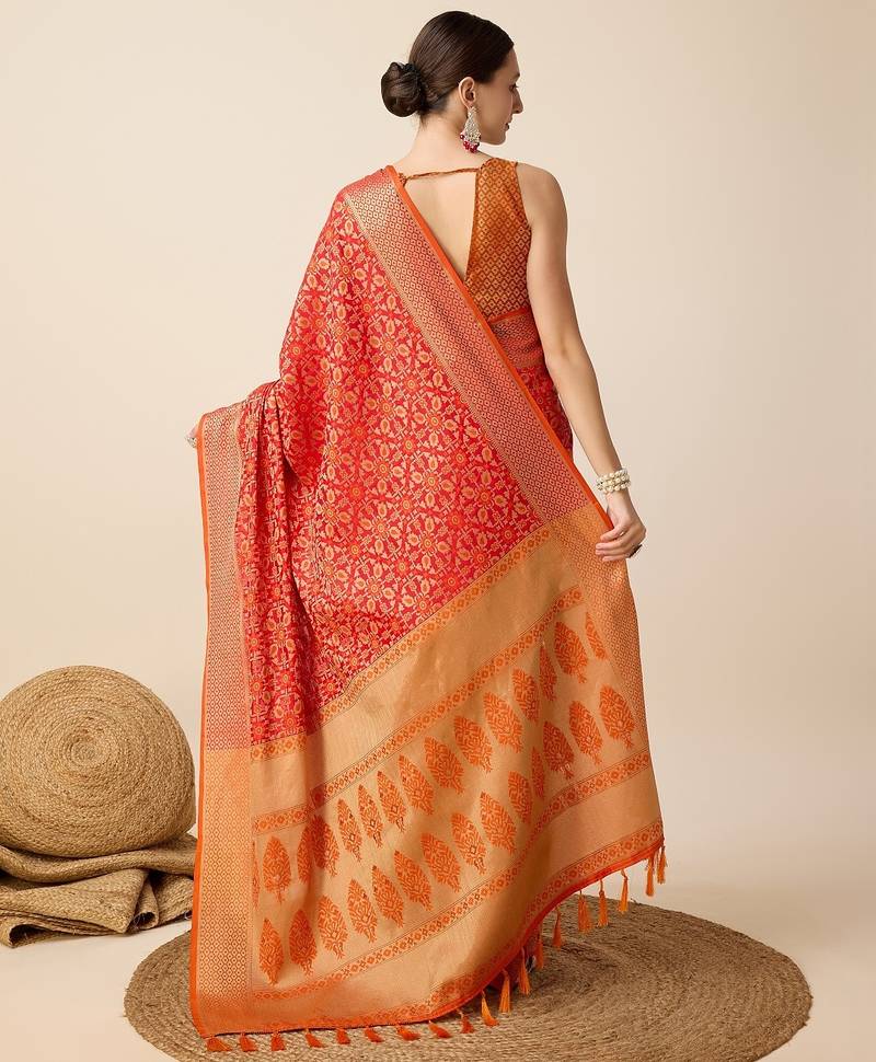 | Product Name | Red Woven Self Design Embellished Pure Silk Banarasi Saree With Blouse | |