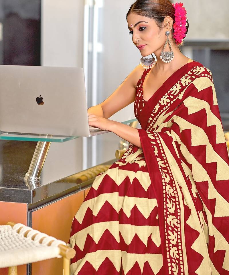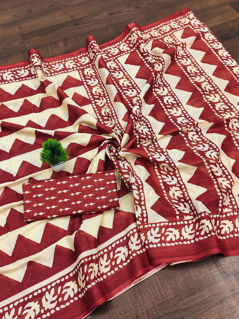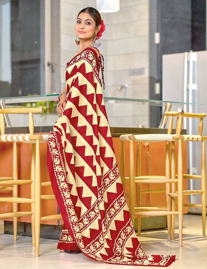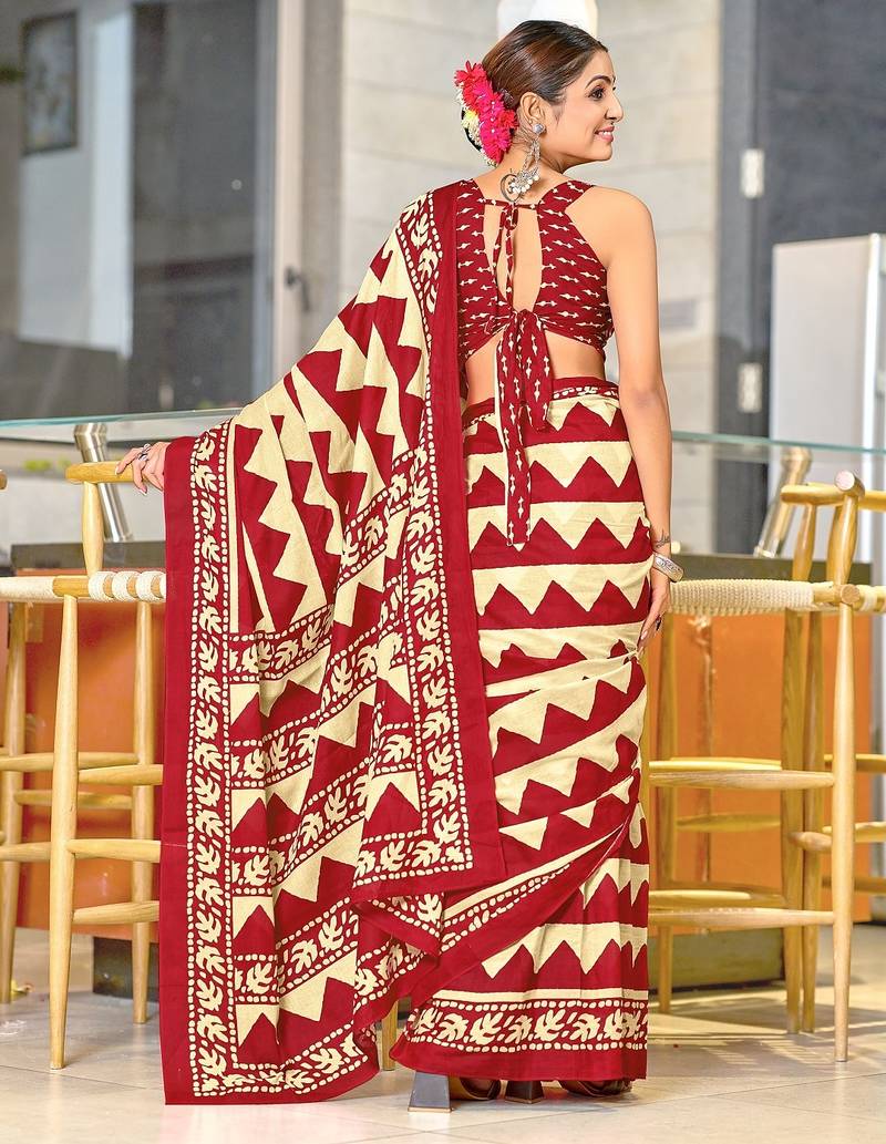 | Product Name | Red Zigzag, Block Print Mulmul Cotton Saree With Blouse. | |
