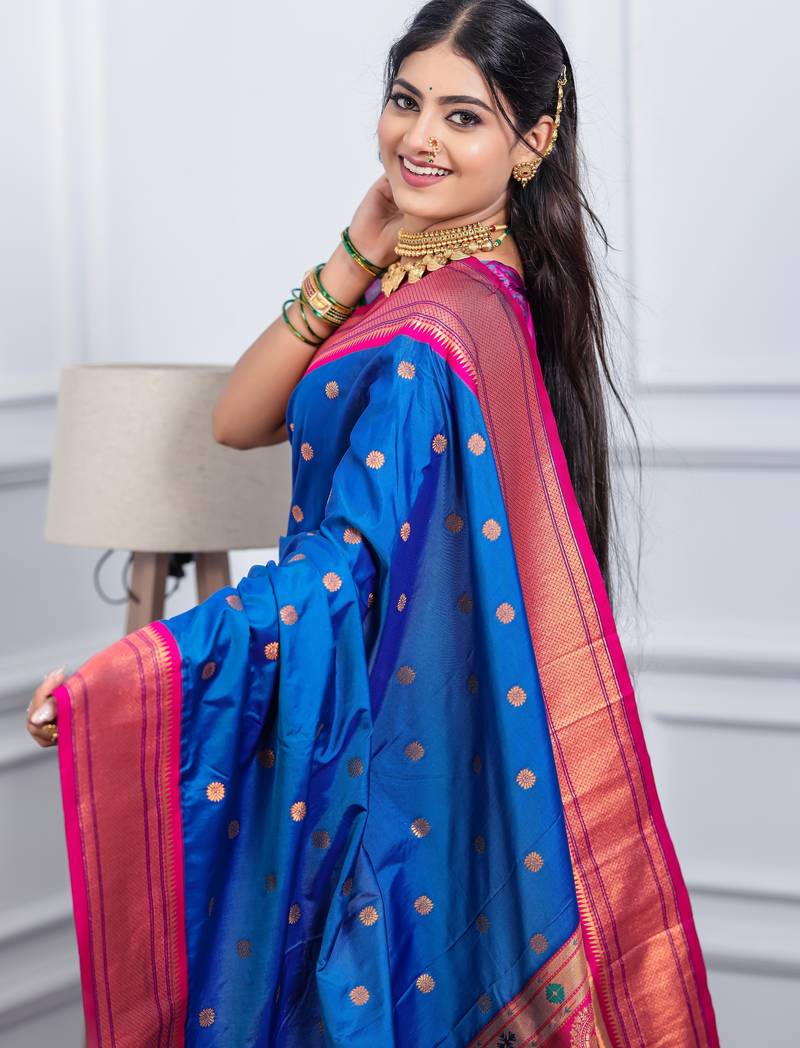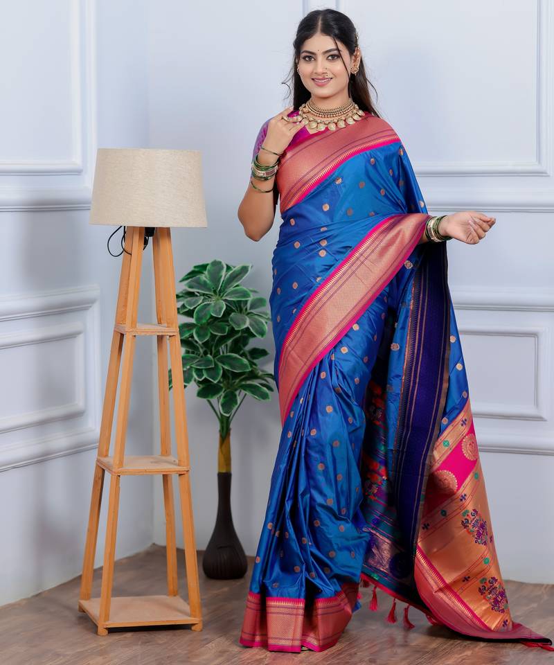 | • | Saree | : | Color- Royal Blue / Fabric- Pure Silk |