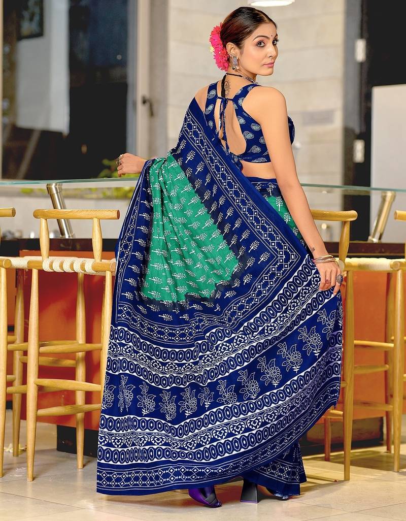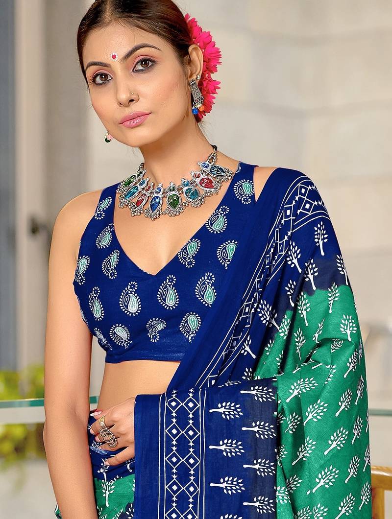 | Product Name | Sea Green Floral Print Soft Pure Cotton Saree With Blouse. | |