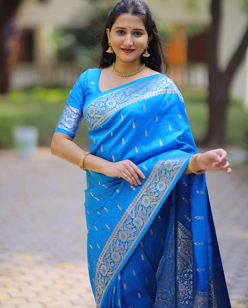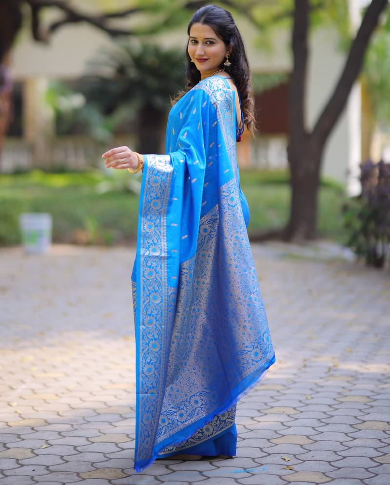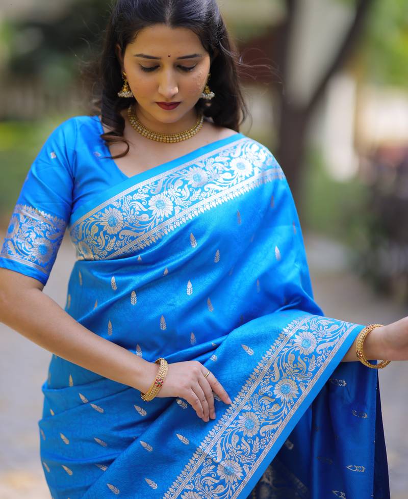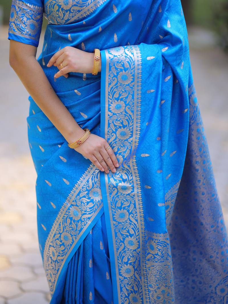 | Product Name | Sky Blue Floral, Zari Work Banarasi Silk Saree With Blouse | |
