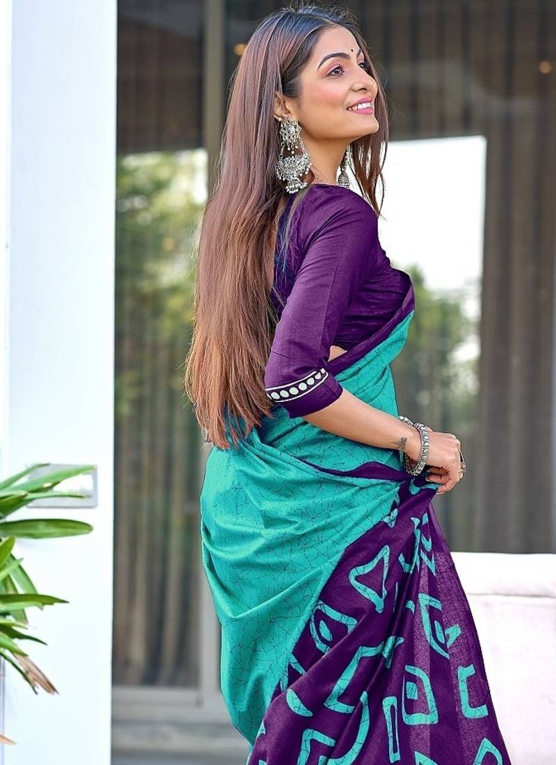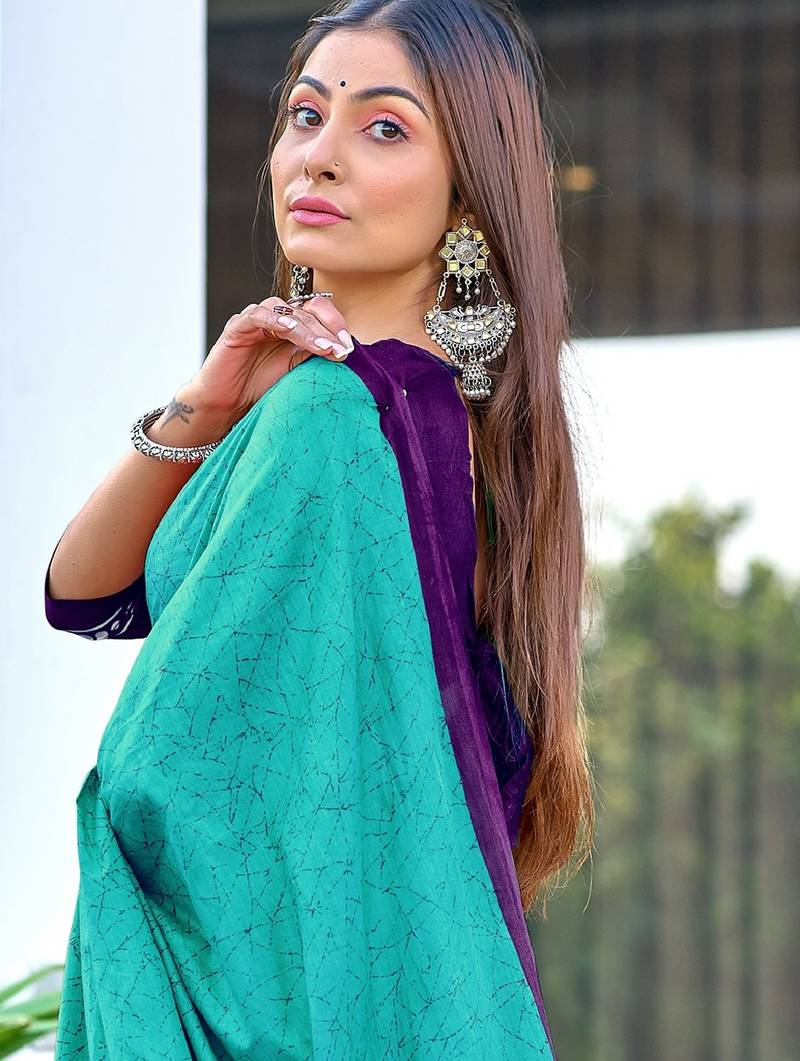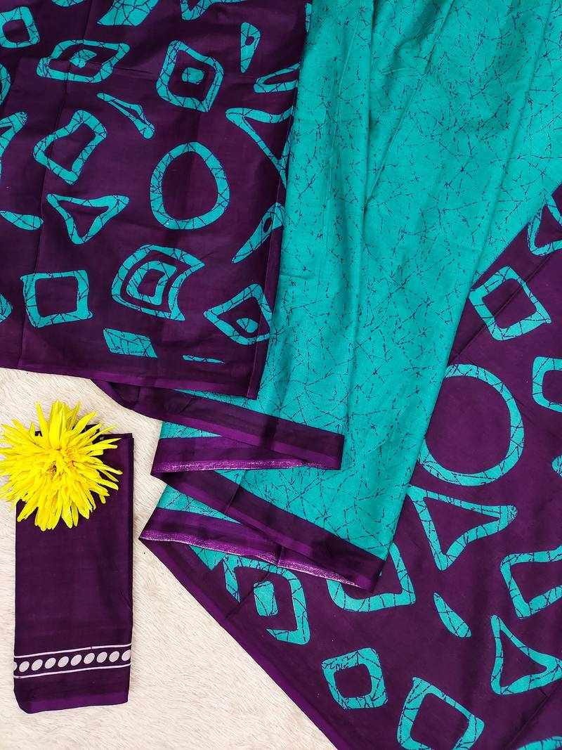 | Product Name | Teal Blue Block Print Soft Pure Cotton Saree With Blouse. | |