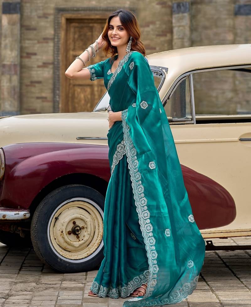 | • | Saree | : | Color- Teal / Fabric- Organza |