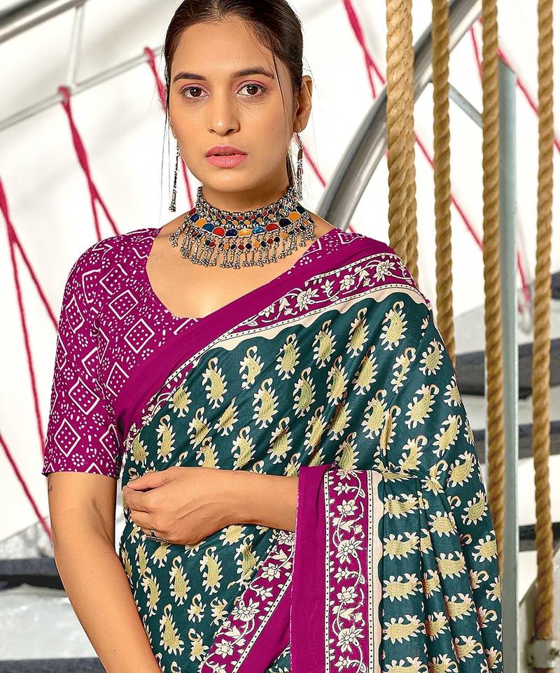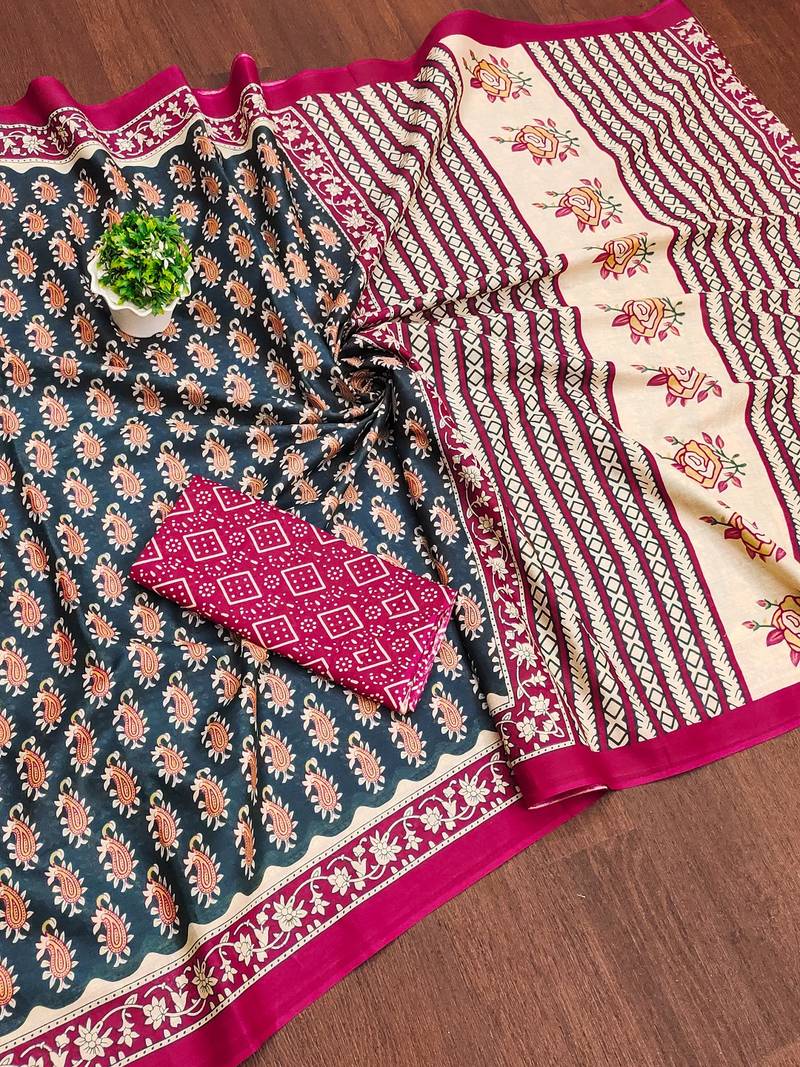 | Product Name | Teal Blue Paisley Print Mulmul Cotton Saree With Blouse. | |