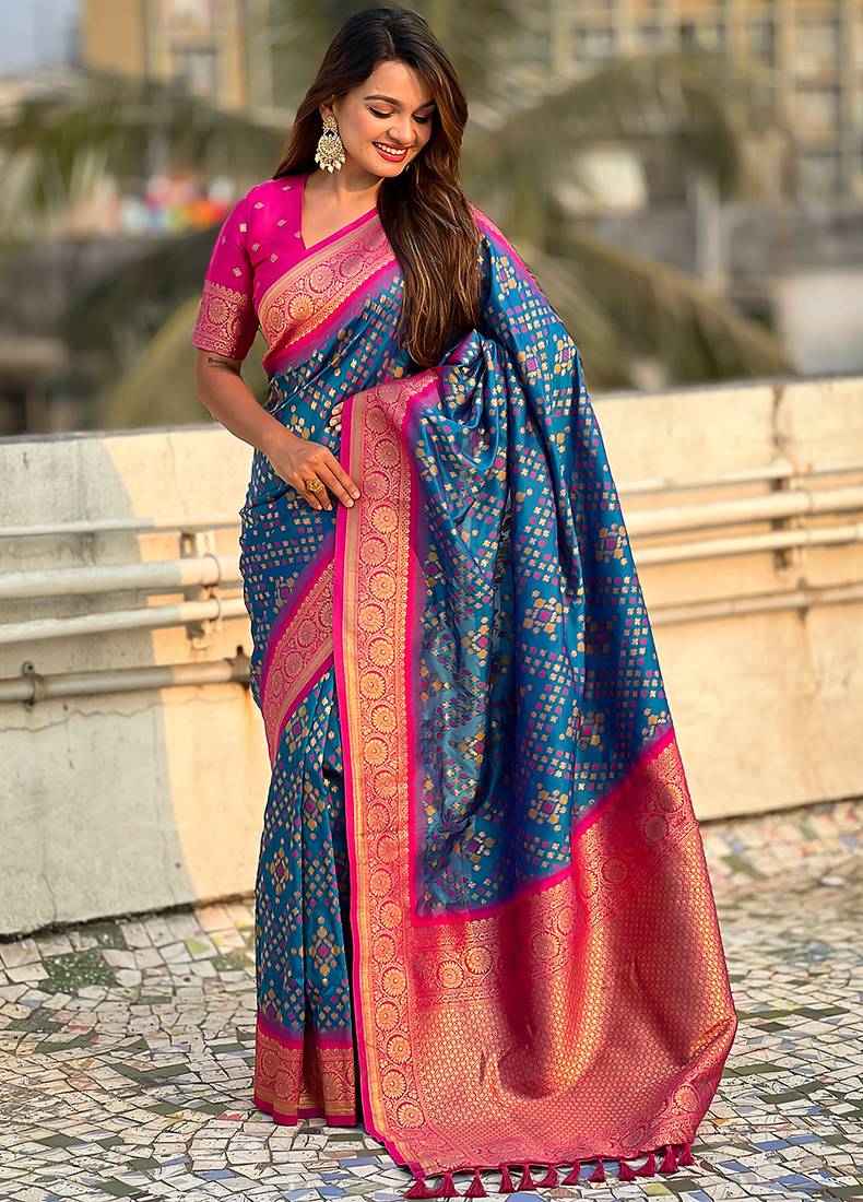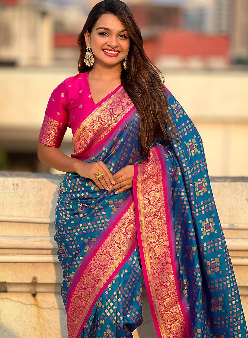 | Product Name | Teal Blue Woven Self Design Silk Blend Patola Saree With Blouse | |