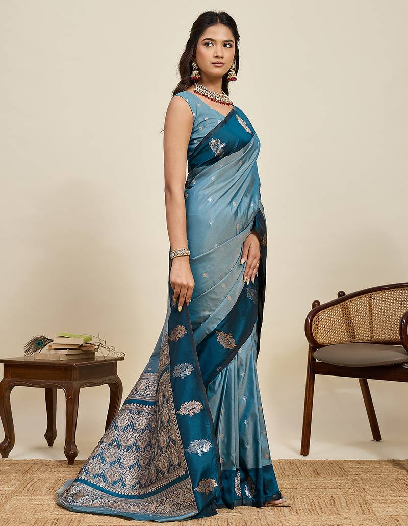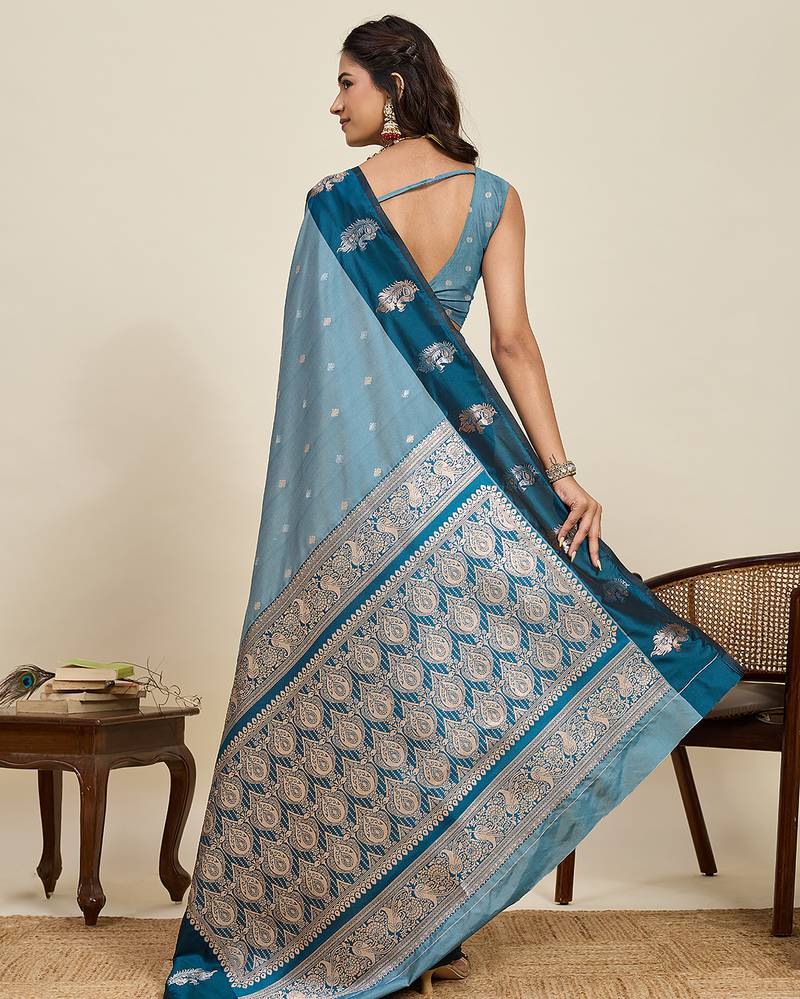 | Product Name | Teal Blue Zari Woven Soft Silk Banarasi Saree With Blouse | |